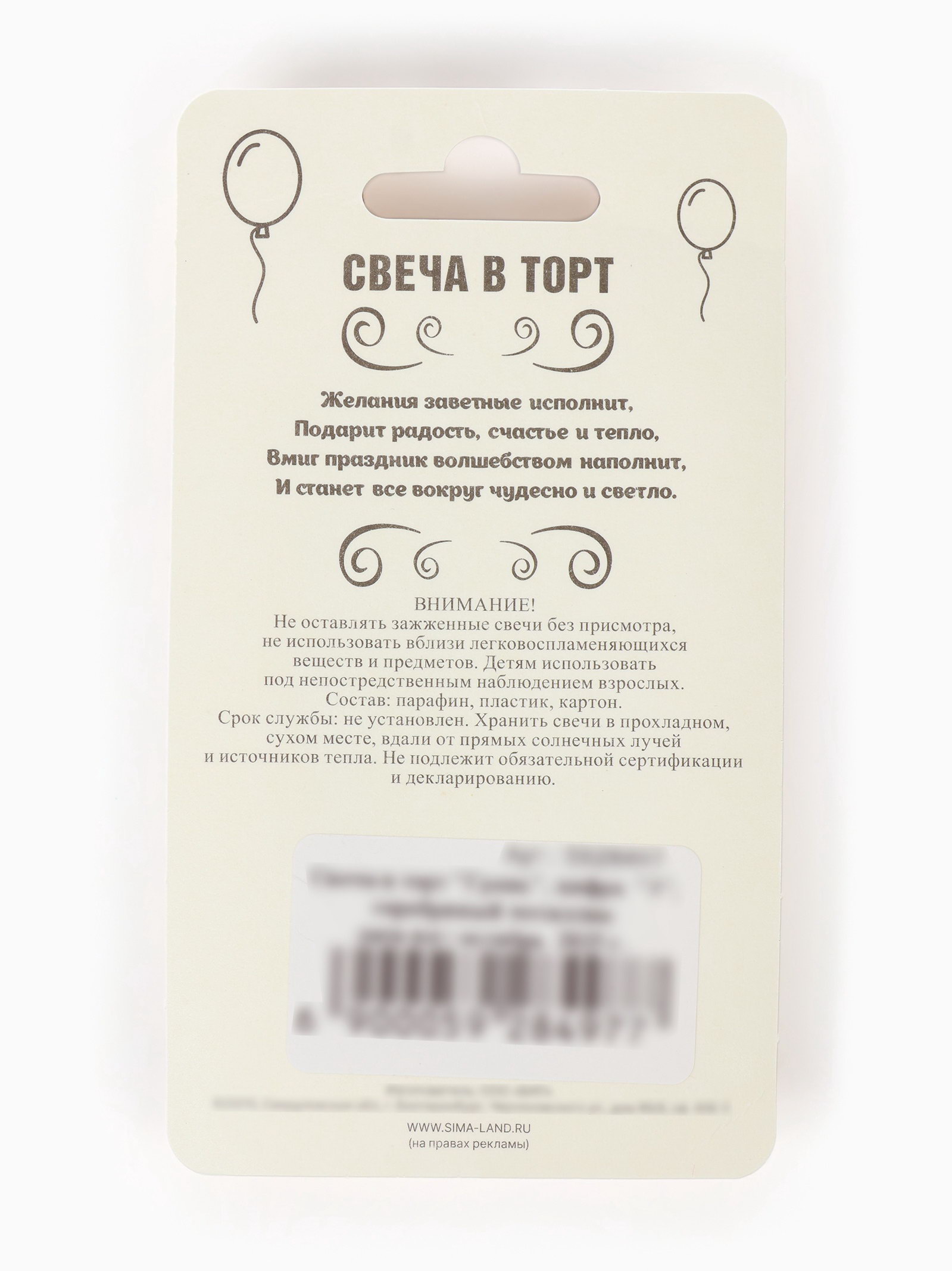 Размер упаковки: 11.5 x 1.2 x 6.5 см. Состав: Парафин Для кого: Унисекс Форма свечи: Цифры В наборе, шт.: 1 tnved: 3406000000 Набор: Нет Температурное ограничение: Нет Цифра: 3 Высота свечи, см: 7.8 Цвет: Серебристый Высота свечи без шпажки, см: 6.5 Уважаемые клиенты! В связи с наступлением осенне-зимнего периода напоминаем Вам, что на свечах с лаковым покрытием от резких перепадов температур или при низкой температуре (ниже – 20С) может отслоиться (вздуться) лак. Явление носит, как правило, обратимый характер. При транспортировке в зимнее (холодное) время года коробки со свечами вскрывать после того, как они постоят на Вашем теплом складе не менее суток. Свечи-цифры – это отличный способ подчеркнуть важную дату или годовщину значимого события: день рождения, годовщина со дня бракосочетания, юбилей кота, празднование по поводу нескольких лет со дня основания фирмы. Свечи подойдут для торта, пирога, капкейка, мороженого или любого другого десерта. Создавайте свой уникальный декор. Комбинируйте цифры, сочетайте между собой различные стилистические решения. | ||