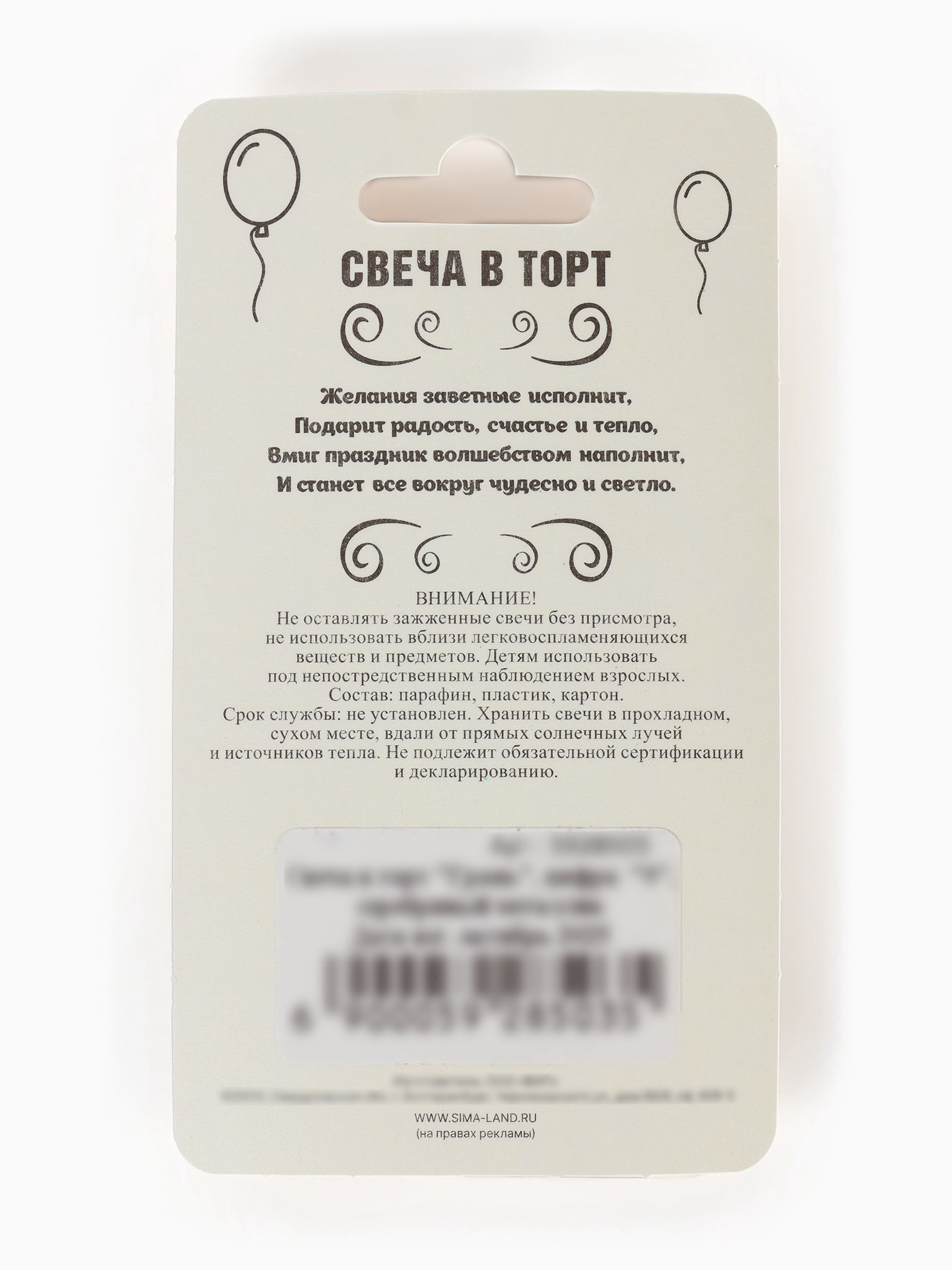 Размер упаковки: 11.5 x 1.2 x 6.5 см. Состав: Парафин Для кого: Унисекс Форма свечи: Цифры В наборе, шт.: 1 tnved: 3406000000 Набор: Нет Температурное ограничение: Нет Цифра: 9 Высота свечи, см: 7.8 Цвет: Серебристый Высота свечи без шпажки, см: 6.5 Уважаемые клиенты! В связи с наступлением осенне-зимнего периода напоминаем Вам, что на свечах с лаковым покрытием от резких перепадов температур или при низкой температуре (ниже – 20С) может отслоиться (вздуться) лак. Явление носит, как правило, обратимый характер. При транспортировке в зимнее (холодное) время года коробки со свечами вскрывать после того, как они постоят на Вашем теплом складе не менее суток. Свечи-цифры – это отличный способ подчеркнуть важную дату или годовщину значимого события: день рождения, годовщина со дня бракосочетания, юбилей кота, празднование по поводу нескольких лет со дня основания фирмы. Свечи подойдут для торта, пирога, капкейка, мороженого или любого другого десерта. Создавайте свой уникальный декор. Комбинируйте цифры, сочетайте между собой различные стилистические решения. | ||
