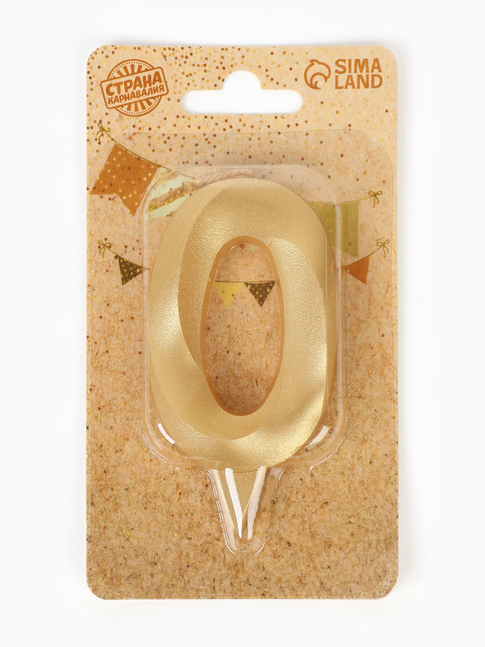 Свеча в торт "Цифра 0", золотая, 6.5 см, Страна Карнавалия, Россия