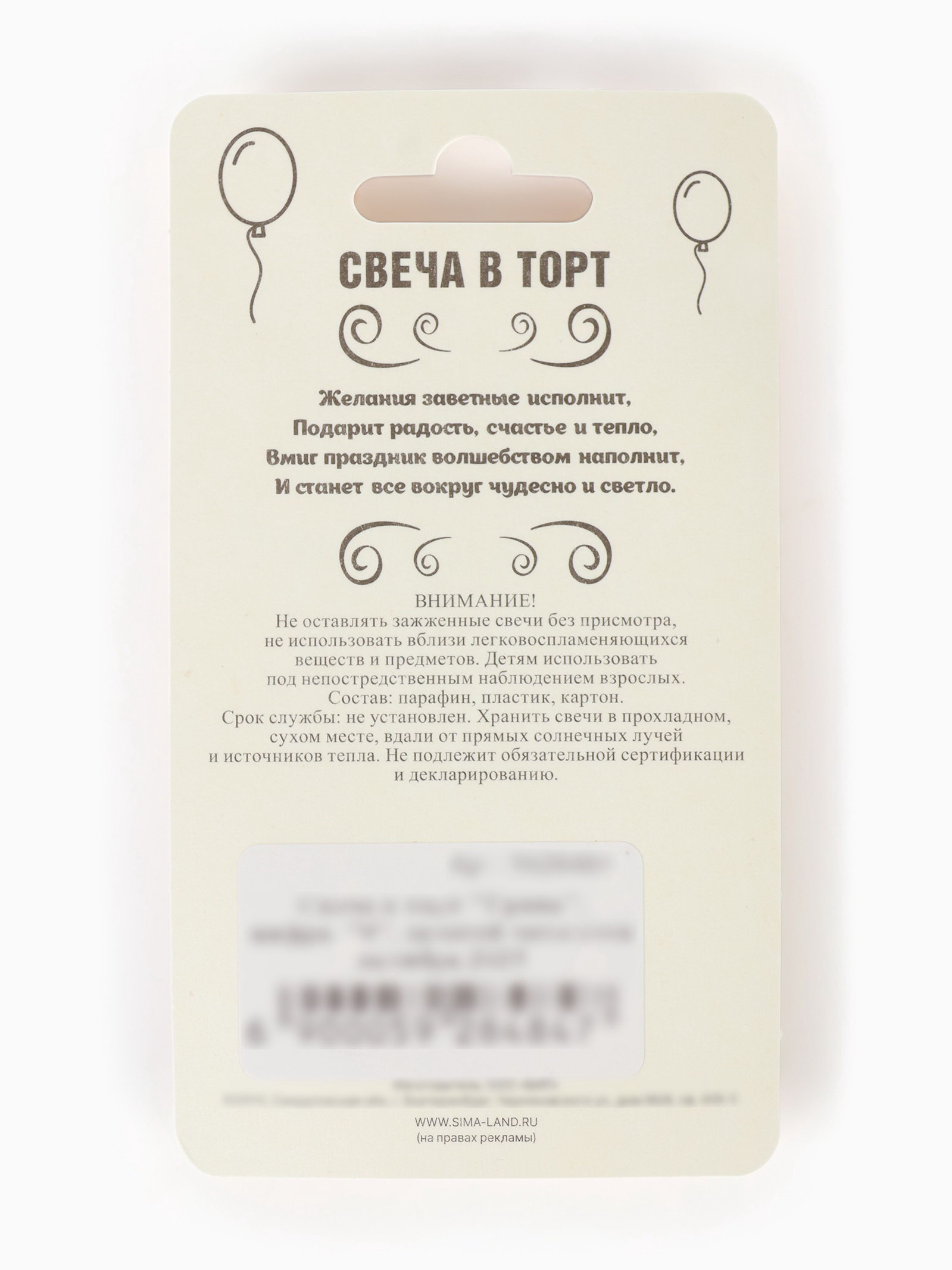Размер упаковки: 6.5 x 1.2 x 11.5 см. Состав: Парафин Форма свечи: Цифры Для кого: Унисекс В наборе, шт.: 1 tnved: 3406000000 Набор: Нет Температурное ограничение: Нет Температурное ограничение: Нет Высота свечи, см: 7.8 Цвет: Золотистый Высота свечи без шпажки, см: 6.5 Уважаемые клиенты! В связи с наступлением осенне-зимнего периода напоминаем Вам, что на свечах с лаковым покрытием от резких перепадов температур или при низкой температуре (ниже – 20С) может отслоиться (вздуться) лак. Явление носит, как правило, обратимый характер. При транспортировке в зимнее (холодное) время года коробки со свечами вскрывать после того, как они постоят на Вашем теплом складе не менее суток. Важно! В настоящее время в продажу поступают два вида свечей. Второй вариант имеет более сглаженные рёбра, во избежание образования сколов при транспортировке. Сама форма свечи осталась без изменений. Несколько праздников – одно решение. Свечи-цифры – это отличный способ подчеркнуть важную дату или годовщину значимого события: день рождения, годовщина со дня бракосочетания, юбилей кота, празднование по поводу нескольких лет со дня основания фирмы. Свечи подойдут для торта, пирога, капкейка, мороженого или любого другого десерта. Создавайте свой уникальный декор. Комбинируйте цифры, сочетайте между собой различные стилистические решения. | ||