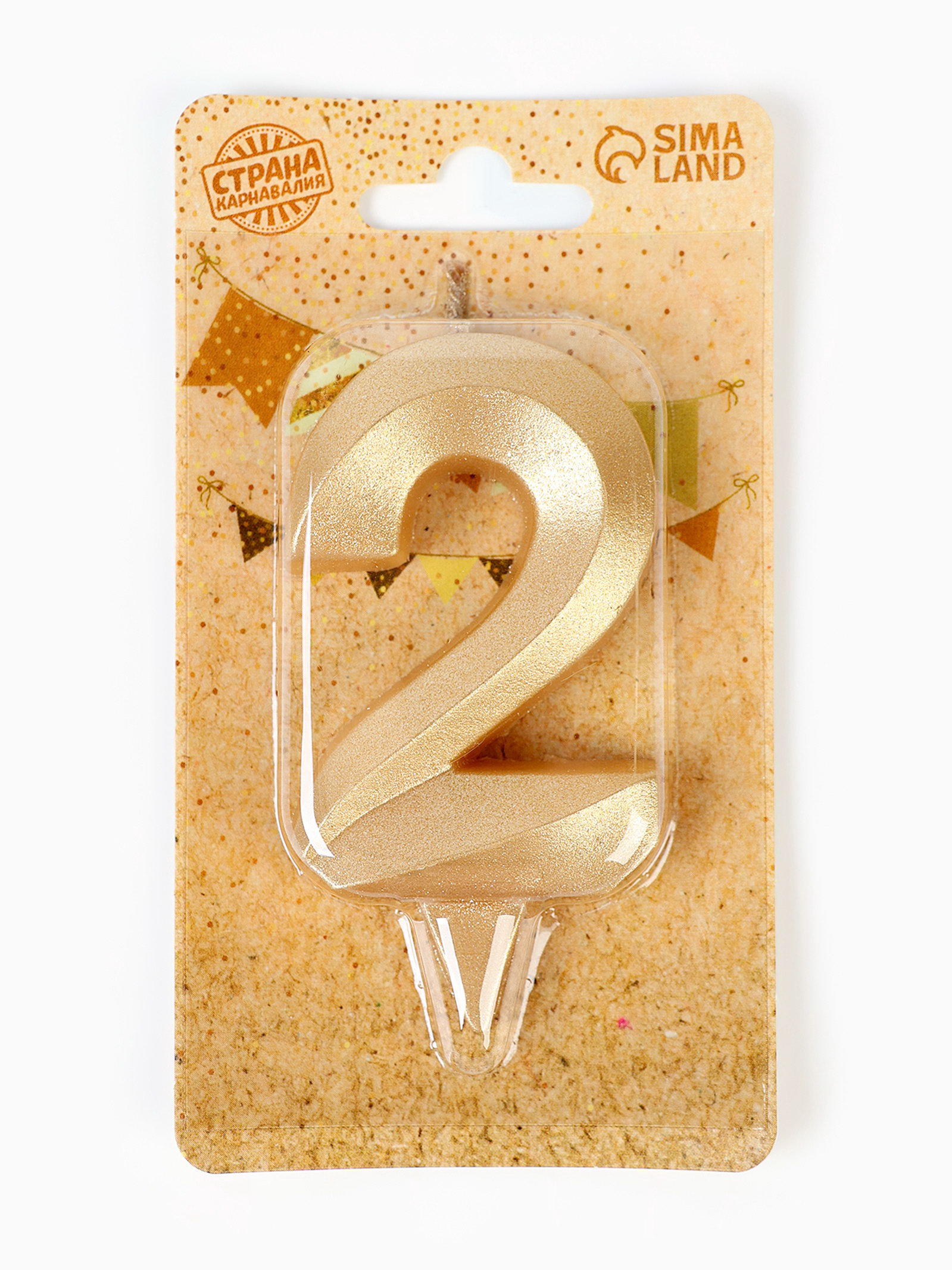 Свеча в торт "Цифра 2", золотая, 6.5 см, Страна Карнавалия, Россия