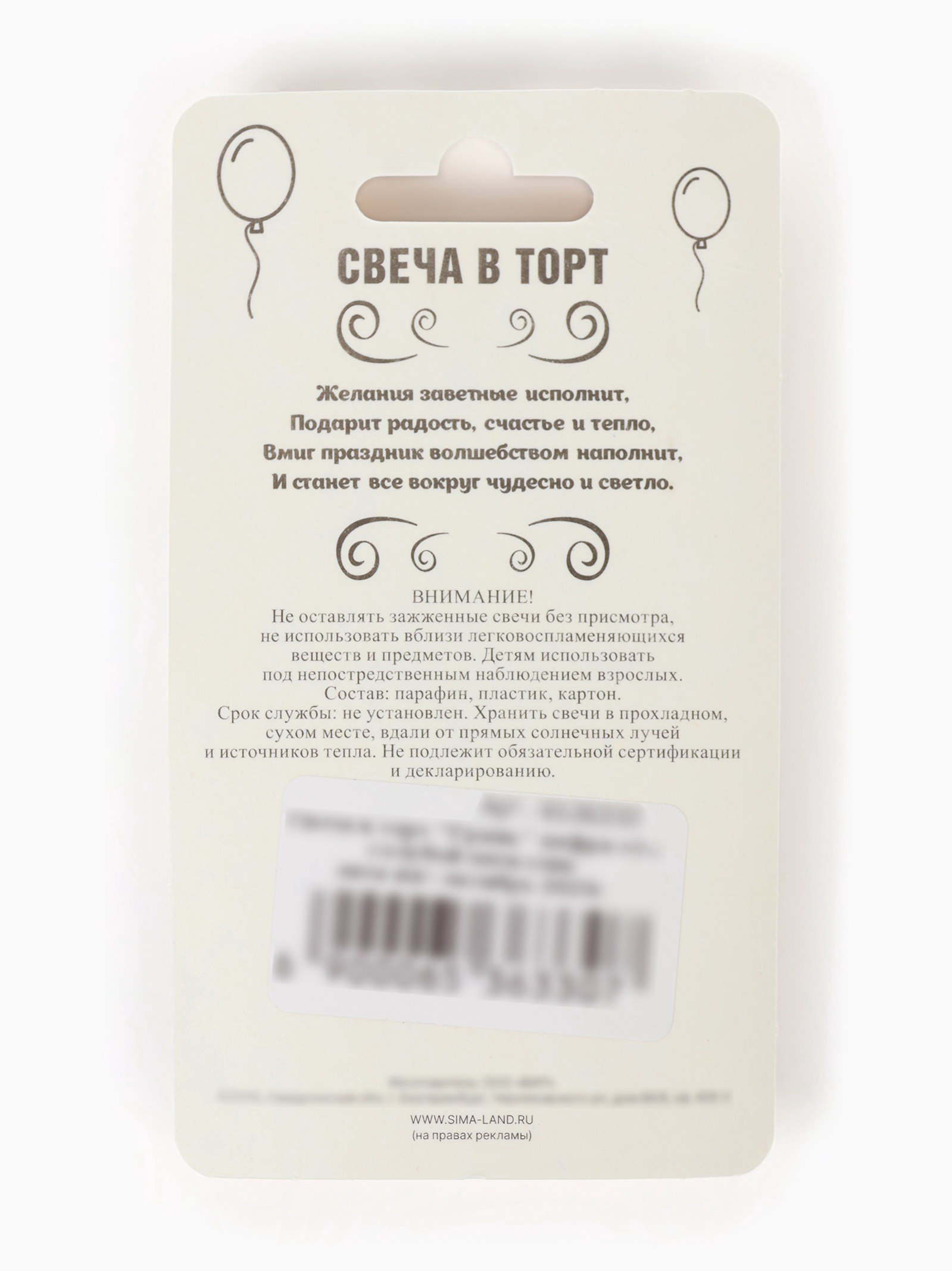 Размер упаковки: 6.5 x 1.5 x 11.5 см. Состав: Парафин Для кого: Унисекс Форма свечи: Цифры В наборе, шт.: 1 tnved: 3406000000 Набор: Нет Температурное ограничение: Нет Цифра: 1 Высота свечи, см: 7.8 Цвет: Голубой Высота свечи без шпажки, см: 6.5 Уважаемые клиенты! В связи с наступлением осенне-зимнего периода напоминаем Вам, что на свечах с лаковым покрытием от резких перепадов температур или при низкой температуре (ниже – 20С) может отслоиться (вздуться) лак. Явление носит, как правило, обратимый характер. При транспортировке в зимнее (холодное) время года коробки со свечами вскрывать после того, как они постоят на Вашем теплом складе не менее суток. Свечи-цифры – это отличный способ подчеркнуть важную дату или годовщину значимого события: день рождения, годовщина со дня бракосочетания, юбилей кота, празднование по поводу нескольких лет со дня основания фирмы. Свечи подойдут для торта, пирога, капкейка, мороженого или любого другого десерта. Создавайте свой уникальный декор. Комбинируйте цифры, сочетайте между собой различные стилистические решения. | ||