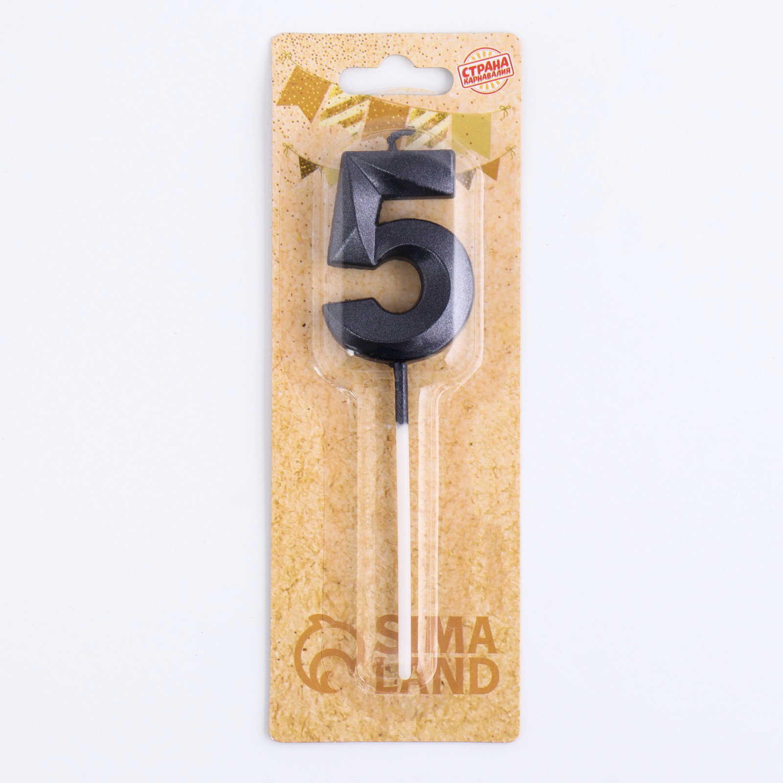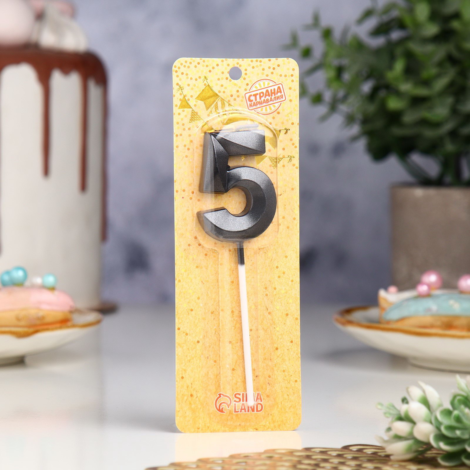 Свеча в торт на шпажке "Цифра 5", черная, 5 см, Страна Карнавалия, Китай