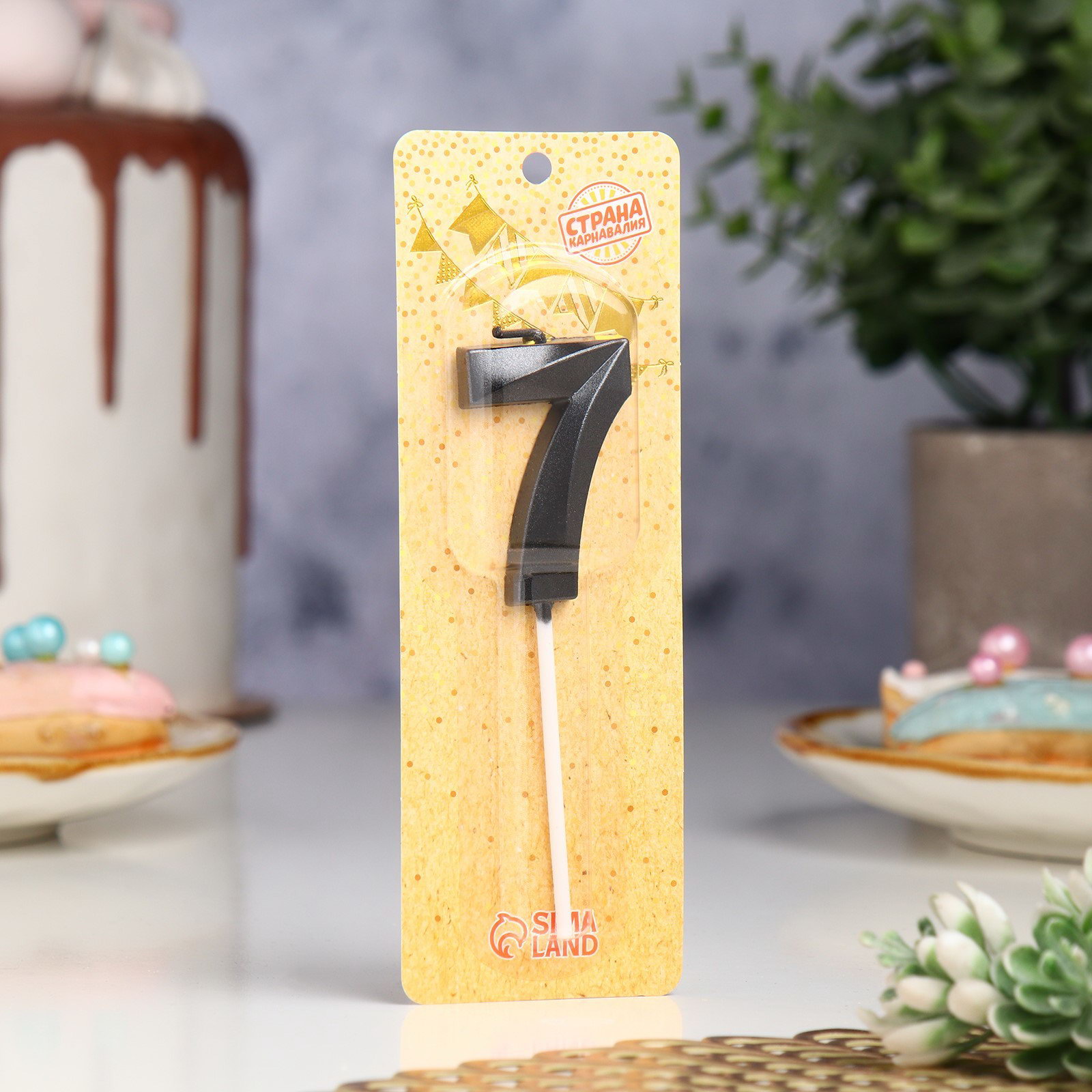 Свеча в торт на шпажке "Цифра 7", черная, 5 см, 3.5x2x5 см., Страна Карнавалия, Китай