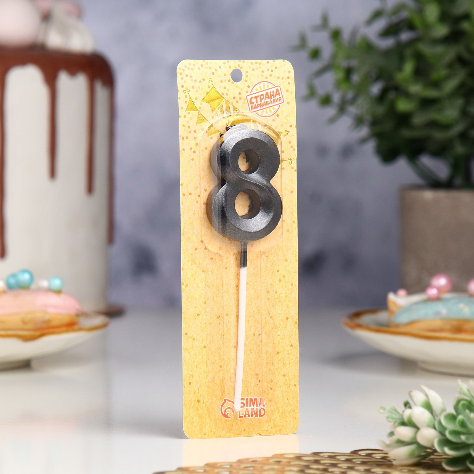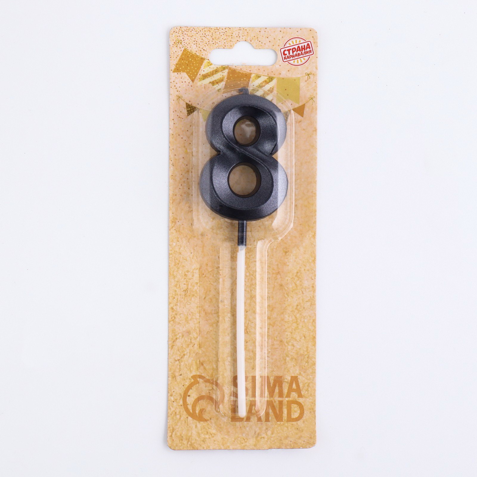 Свеча в торт на шпажке "Цифра 8", черная, 5 см, 3.5x2x5 см., Страна Карнавалия, Китай