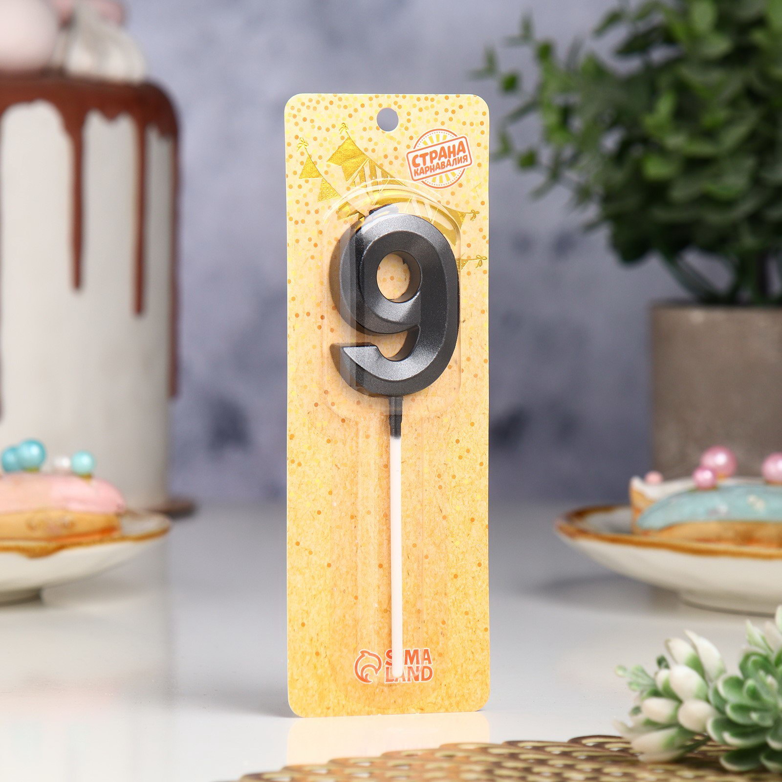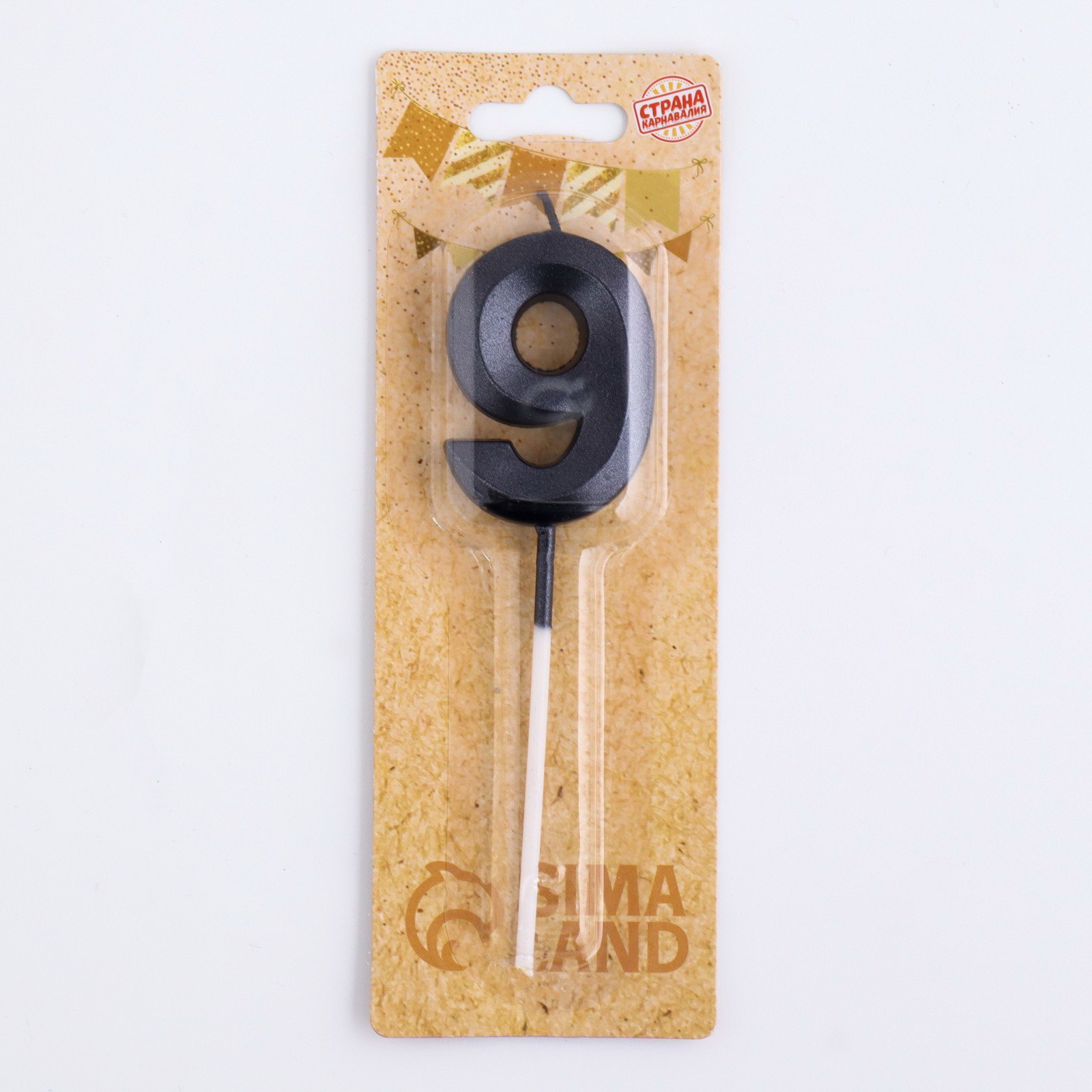 Свеча в торт на шпажке "Грань", цифра "9", черная, 5 см, Страна Карнавалия, Китай