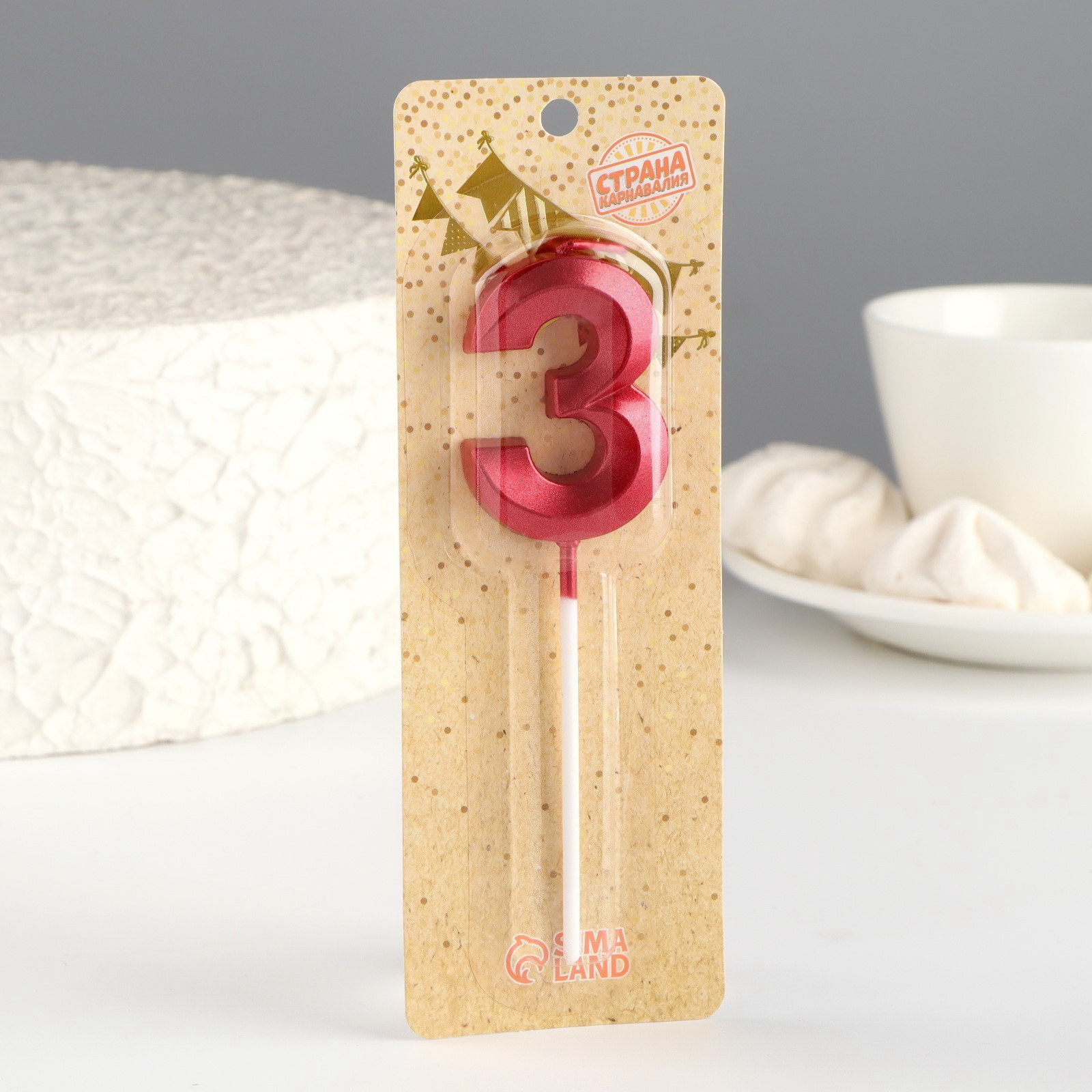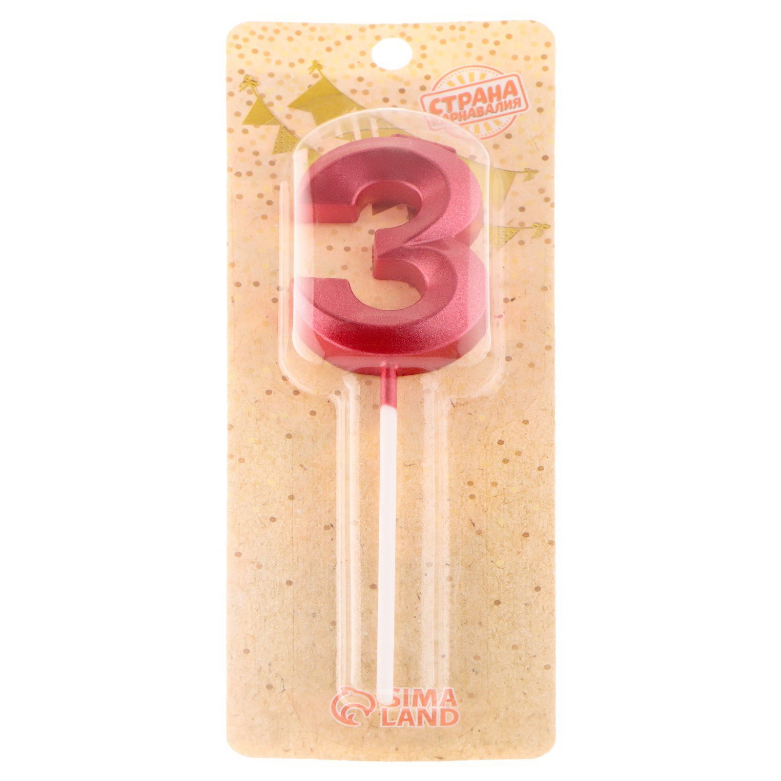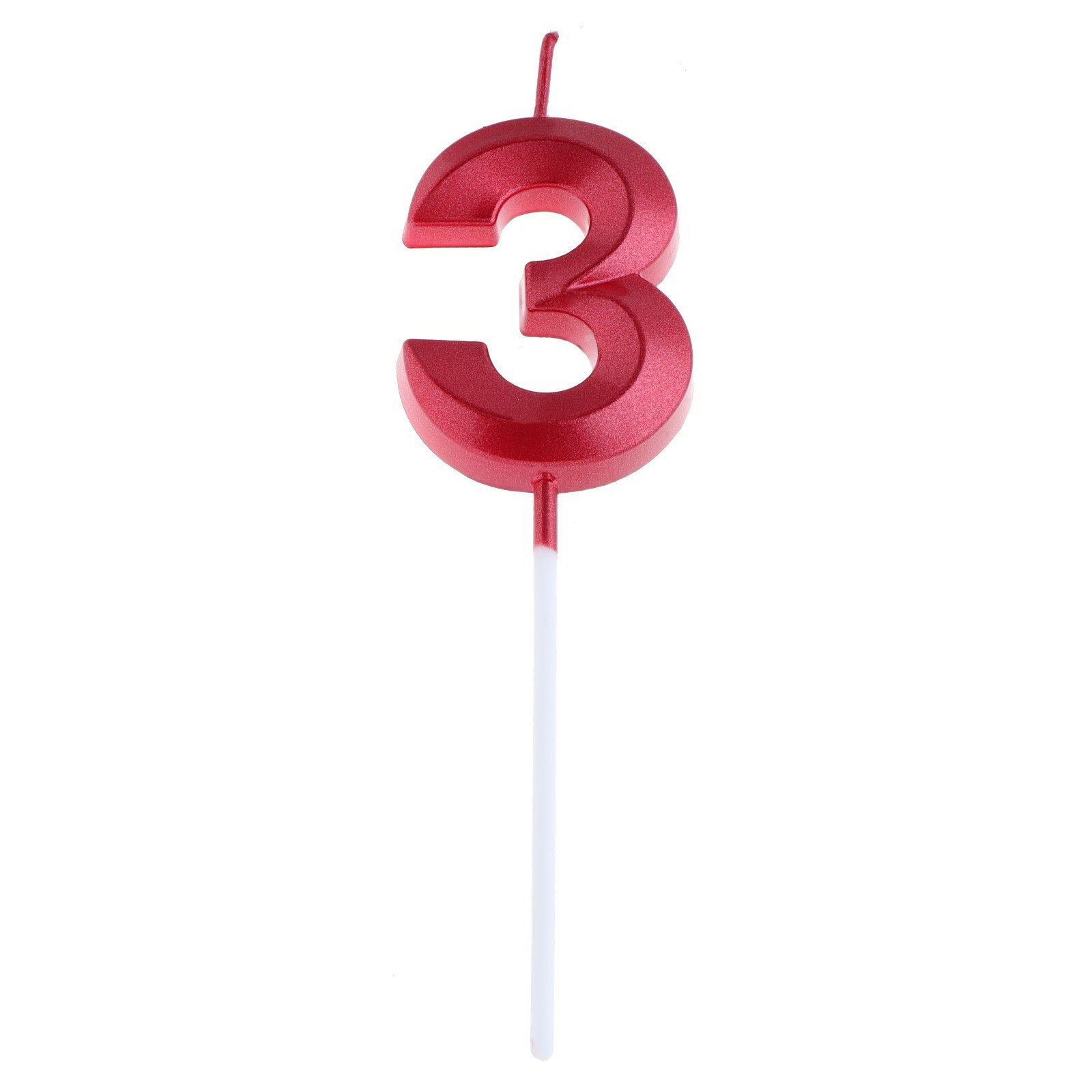 Свеча в торт на шпажке "Цифра 3", красная, 5 см, Страна Карнавалия, Китай