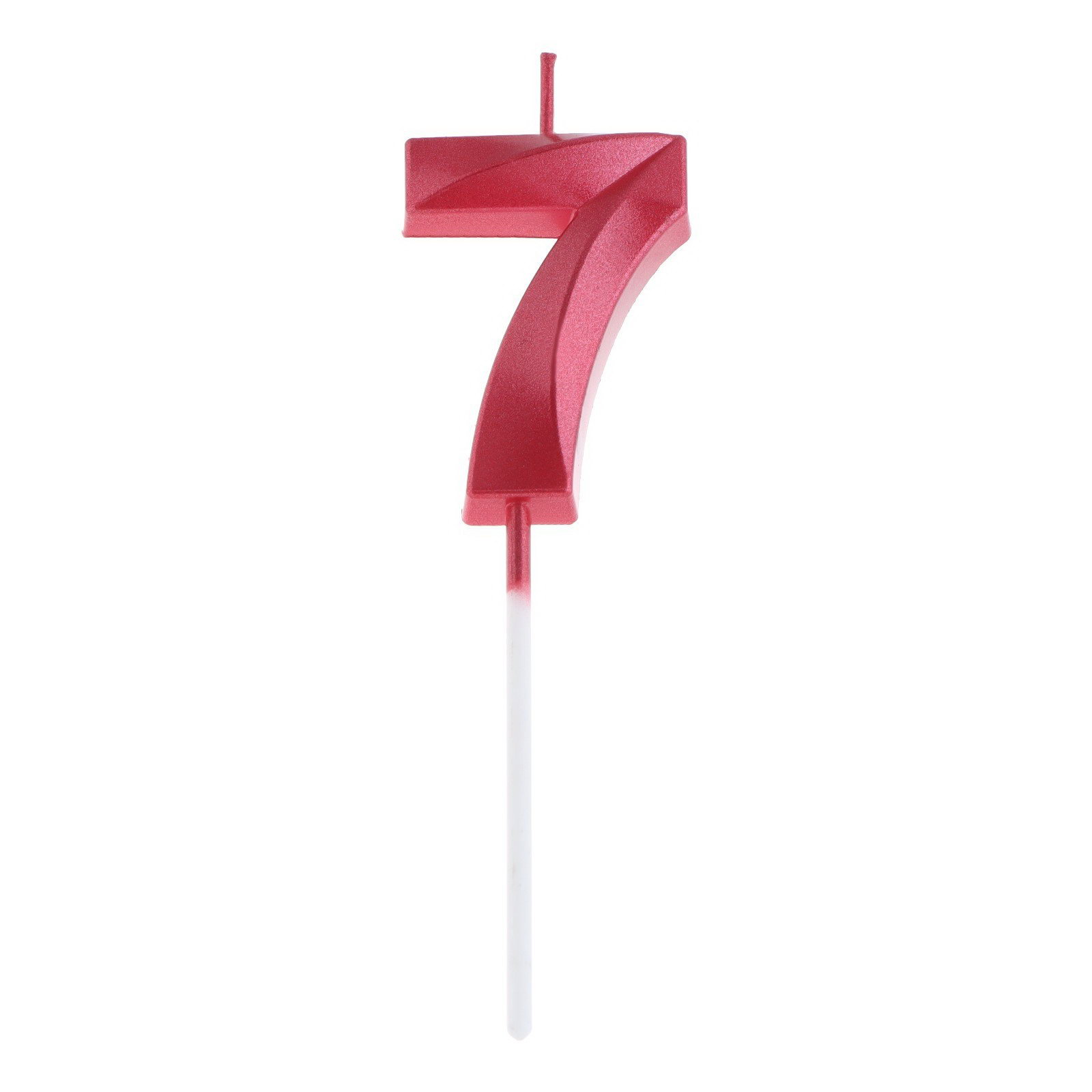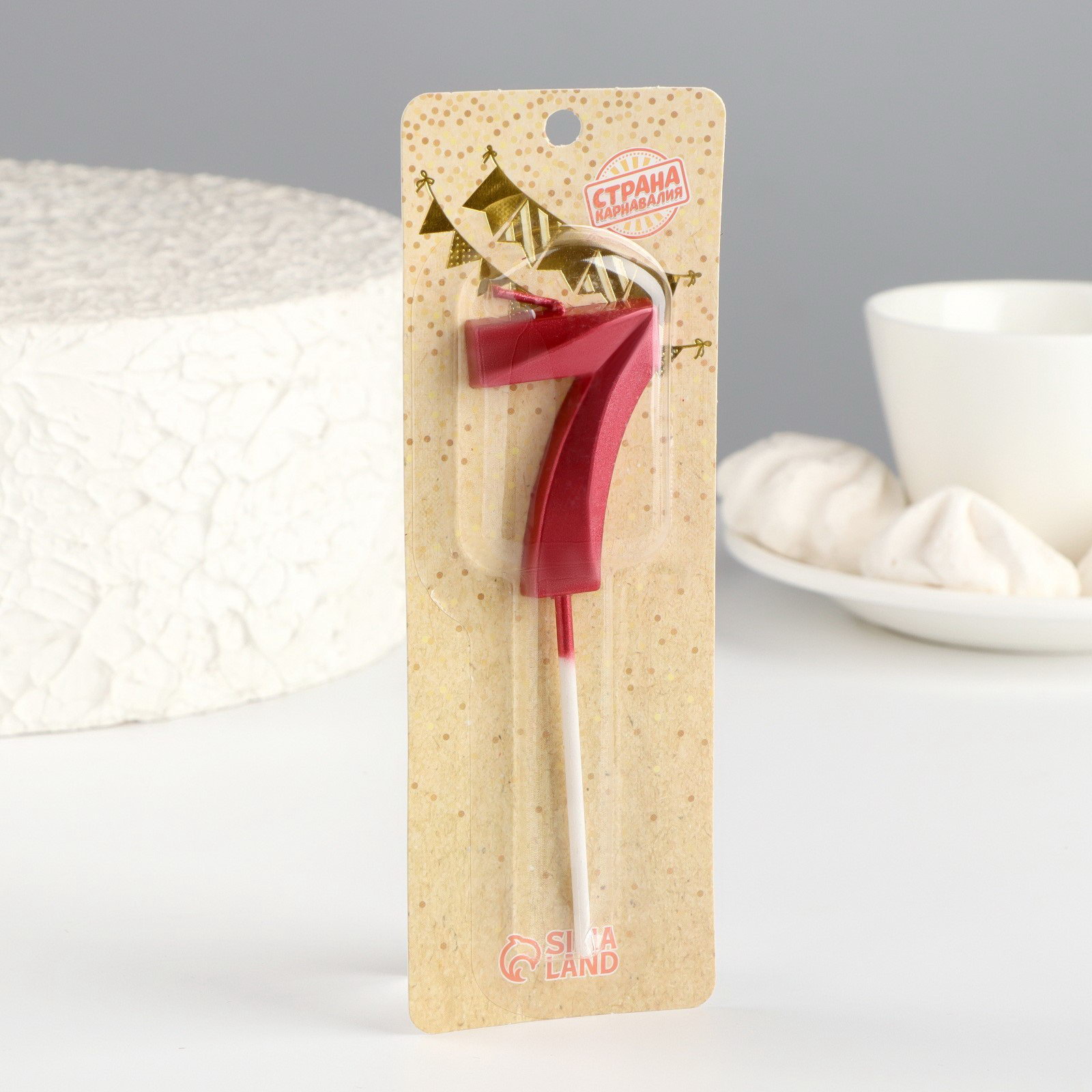 Свеча в торт на шпажке "Цифра 7", красная, 5 см, 3.5x2x5 см., Страна Карнавалия, Китай