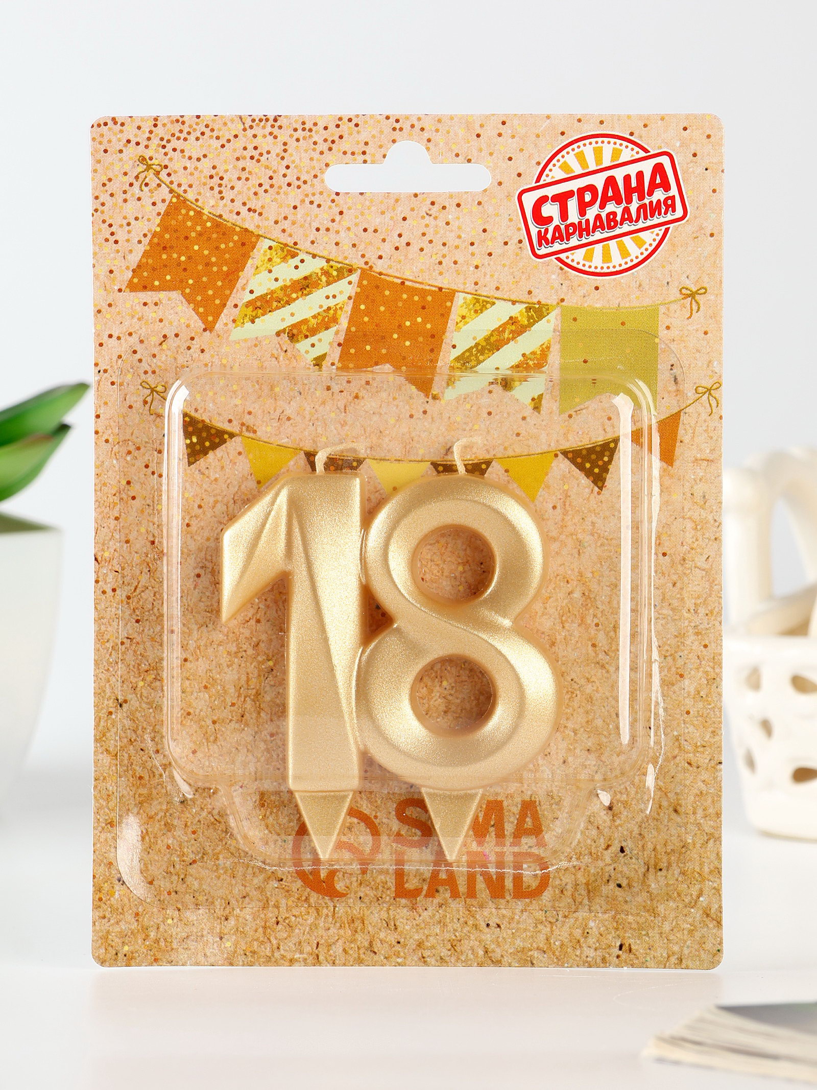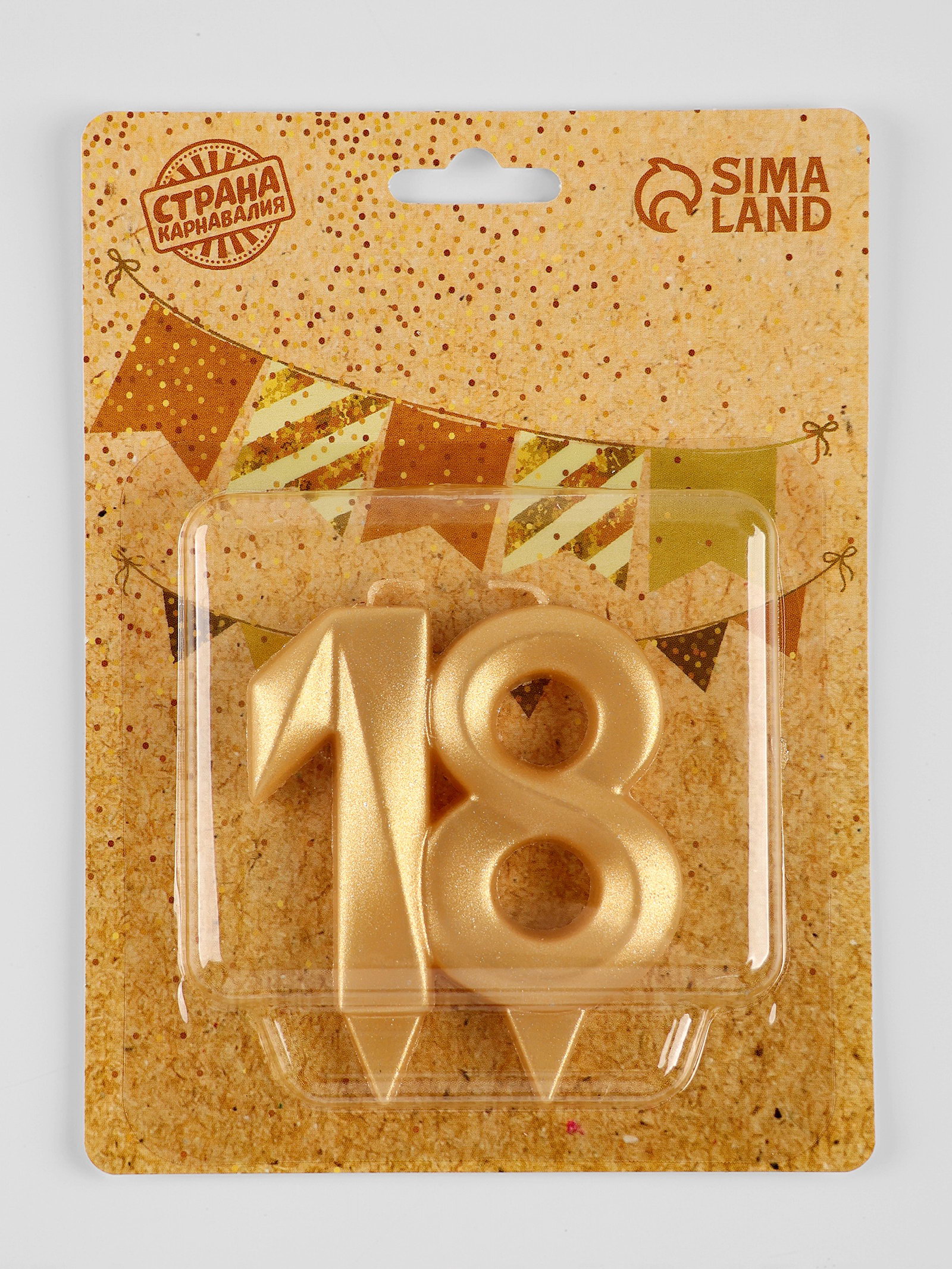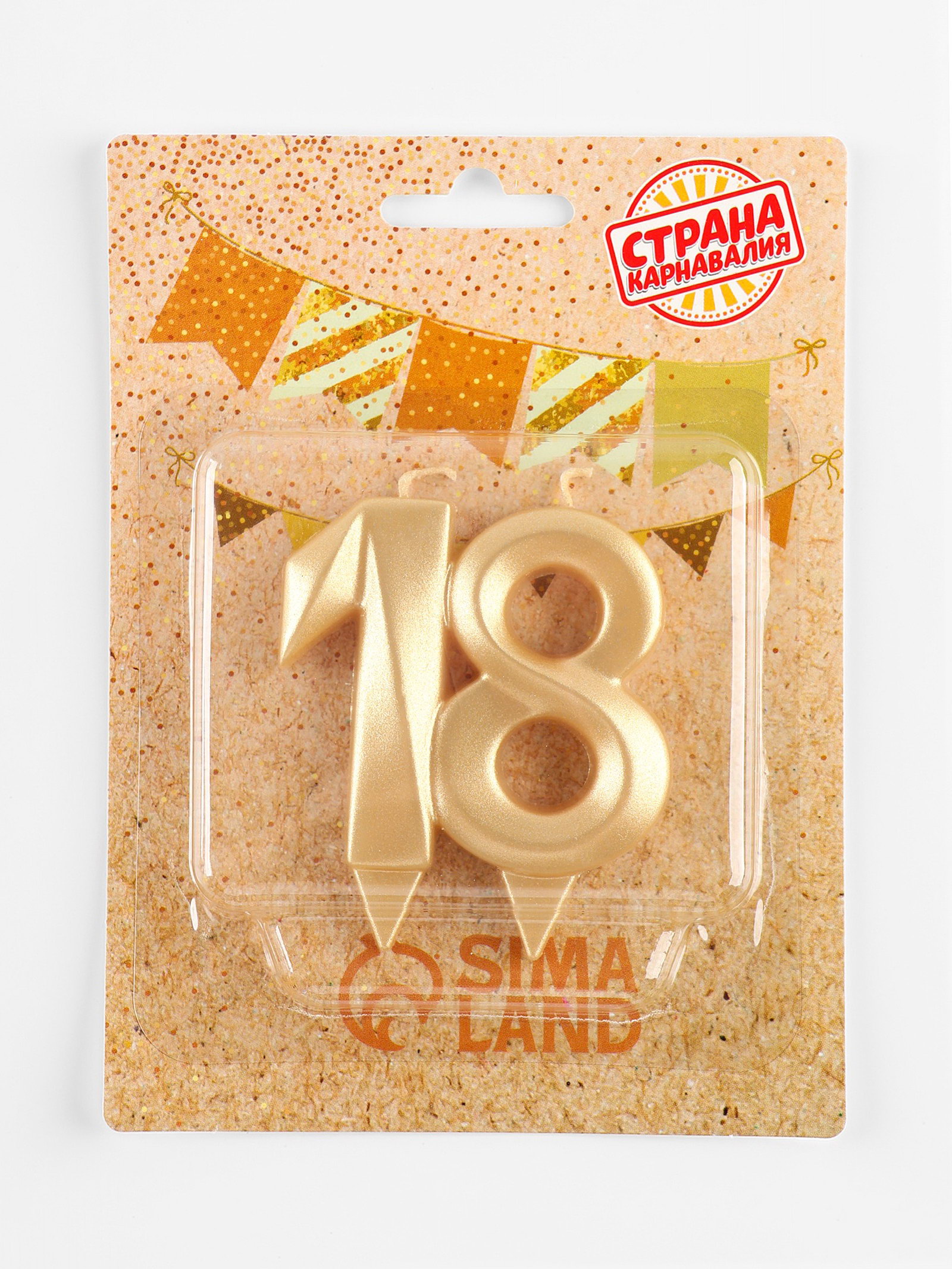 Свеча в торт "Грань", цифра 18, золотой металлик, 6.5 см, Страна Карнавалия, Россия
