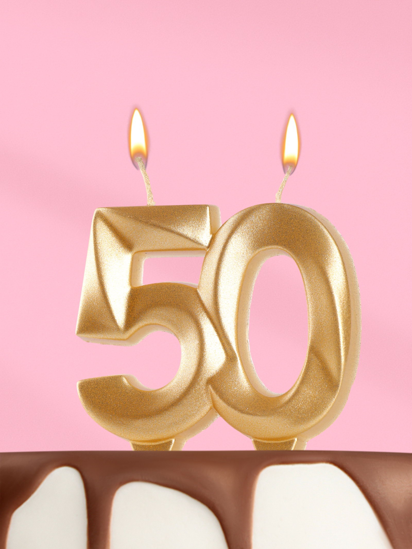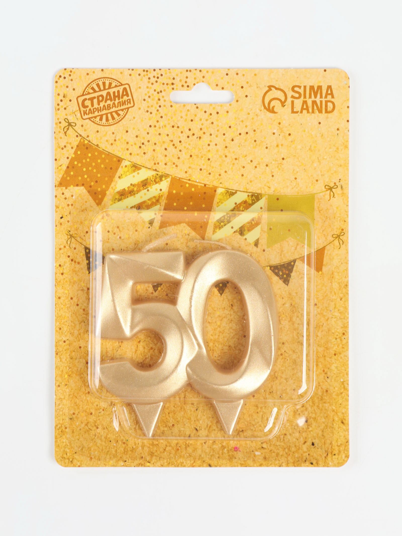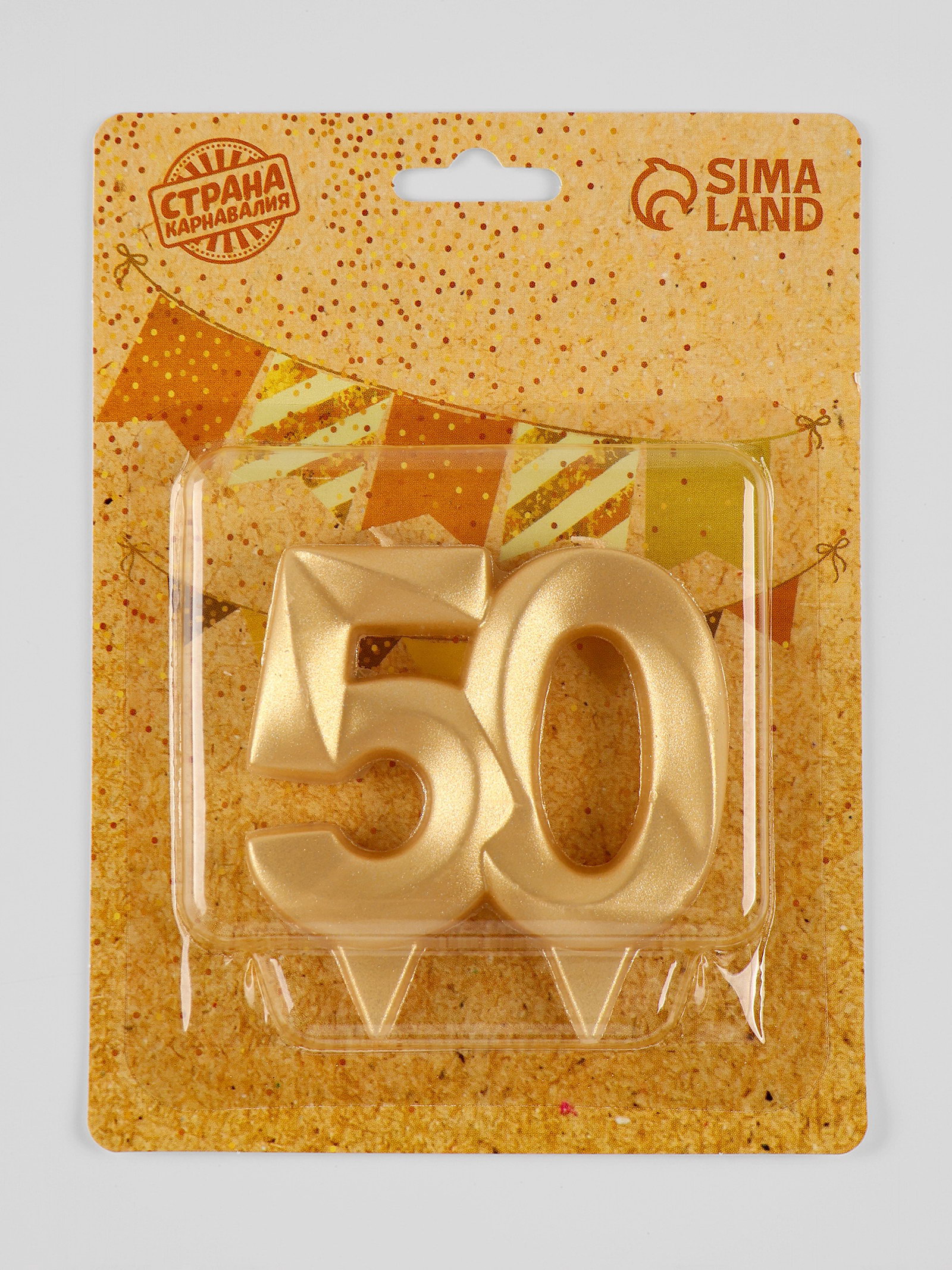 Свеча в торт юбилейная "Грань", цифра 50, золотой металлик, 6.5 см, Страна Карнавалия, Россия