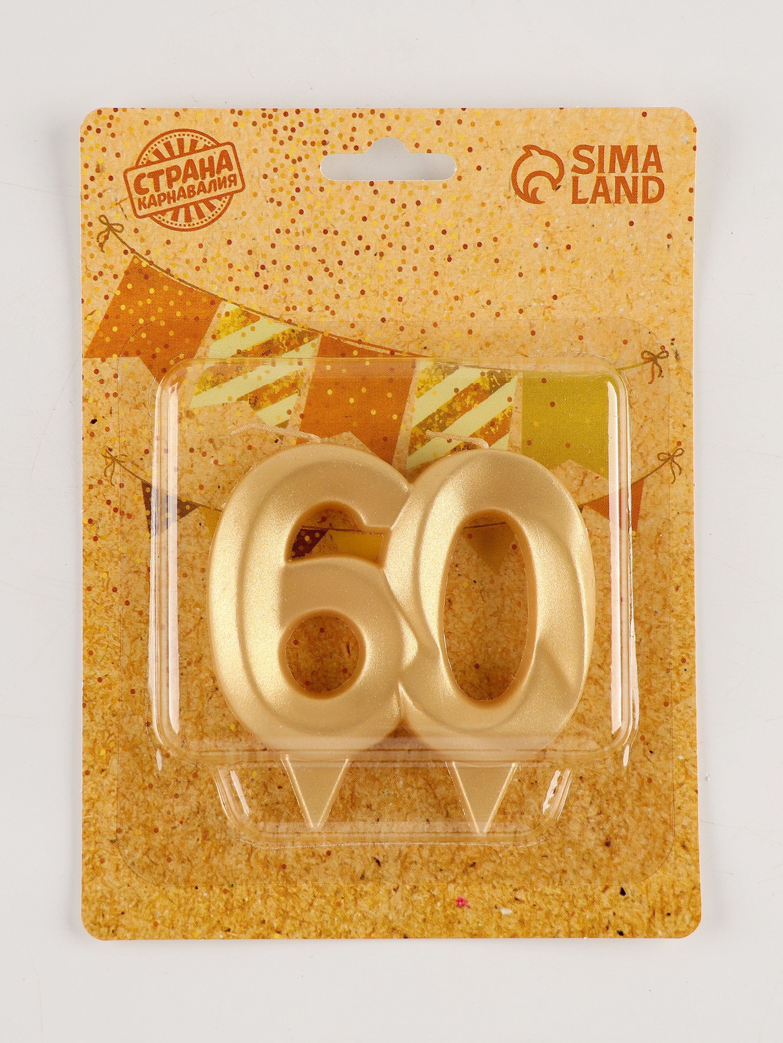 Свеча в торт юбилейная "Грань", цифра 60, золотой металлик, 6.5 см, Страна Карнавалия, Россия