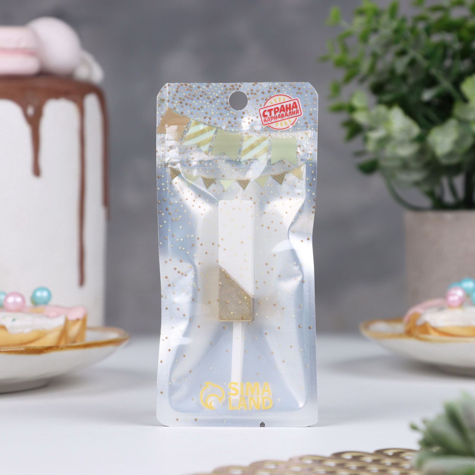 Свеча в торт "Манхеттен", цифра 1, белая с золотом, 5 см, Страна Карнавалия, Китай