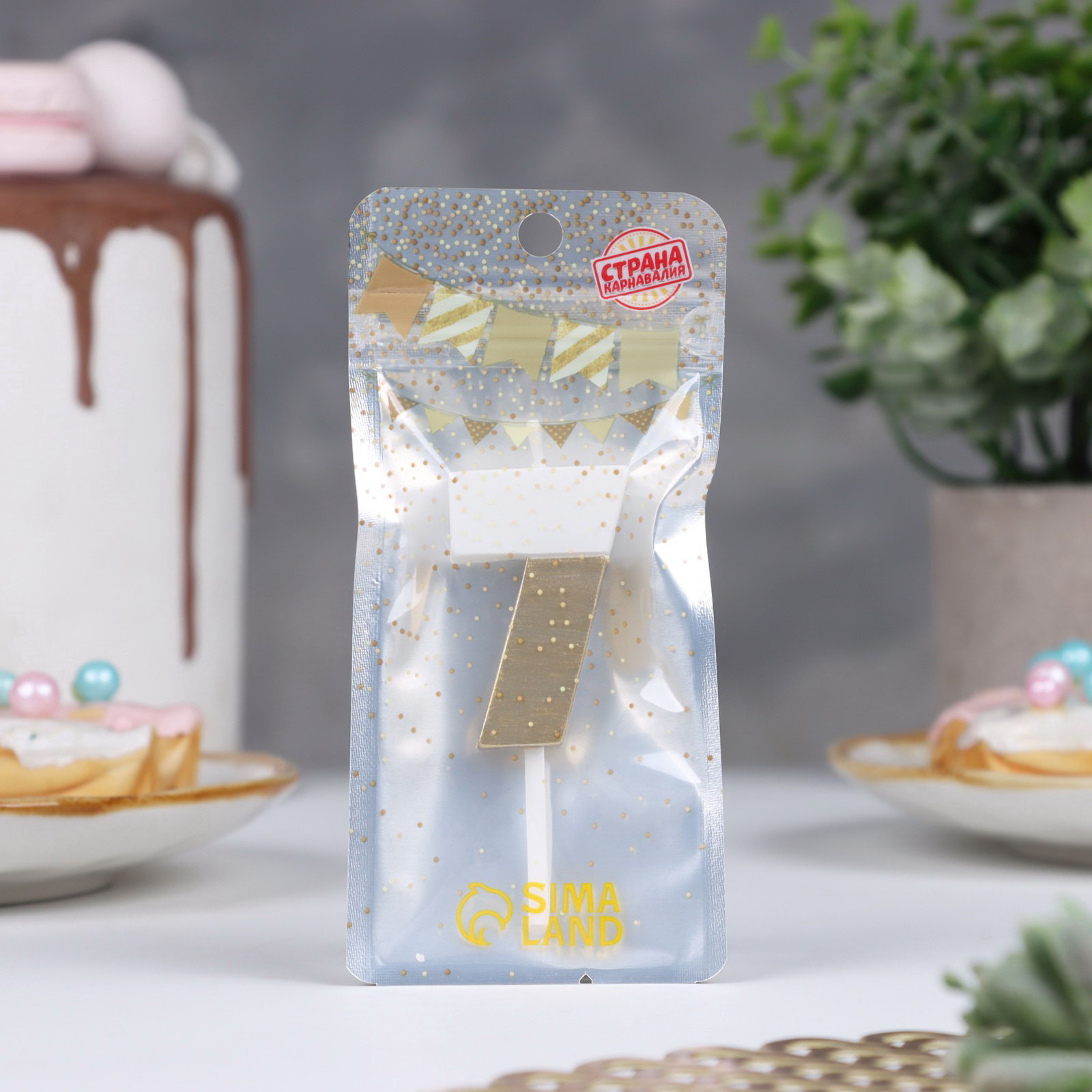 Свеча в торт "Манхеттен", цифра 7, белая с золотом, 5 см, Страна Карнавалия, Китай