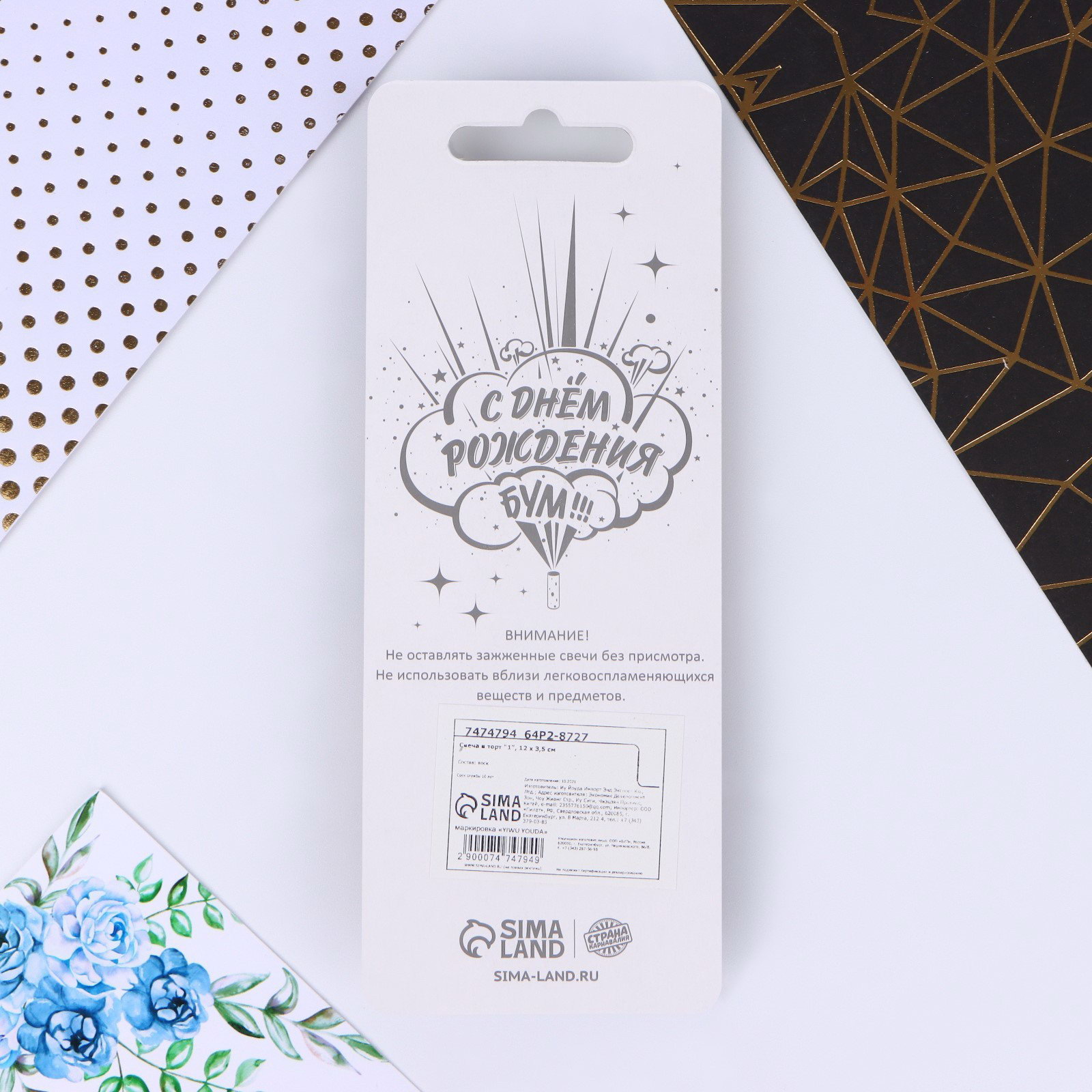 Цвет: Золотистый, Чёрный Вид упаковки: Блистер, Подложка Размер упаковки: 6 x 16.5 x 0.3 см. Высота свечи, см: 11.5 Набор: Нет Форма свечи: Цифры Форма свечи: Цифры tnved: 3406000000 Состав: Воск Темпер. ограничение НЕ ВЫШЕ ℃: +25 Темпер. ограничение НЕ НИЖЕ ℃: -10 Цифра: 1 Для кого: Унисекс Тематика праздника: День рождения В наборе, шт.: 1 Температурное ограничение: Нет Свечи для торта на День рождения - неотъемлемая часть праздника. Украсьте угощение свечами, чтобы сделать особенный день в году ещё более ярким и незабываемым. Ведь задувание свечей вызывает бурные эмоции и у взрослых, и у детей, потому что в любом возрасте мы все мечтаем об исполнении желаний и для всех нас это один из самых трогательных и волшебных моментов. Яркие свечи украсят праздничный стол и создадут нужную атмосферу. Изготовлены из высокоочищенного пищевого парафина, который не влияет на вкусовые качества блюд, а удобная упаковка помогает сохранять свечи при длительном хранении и транспортировке. | ||