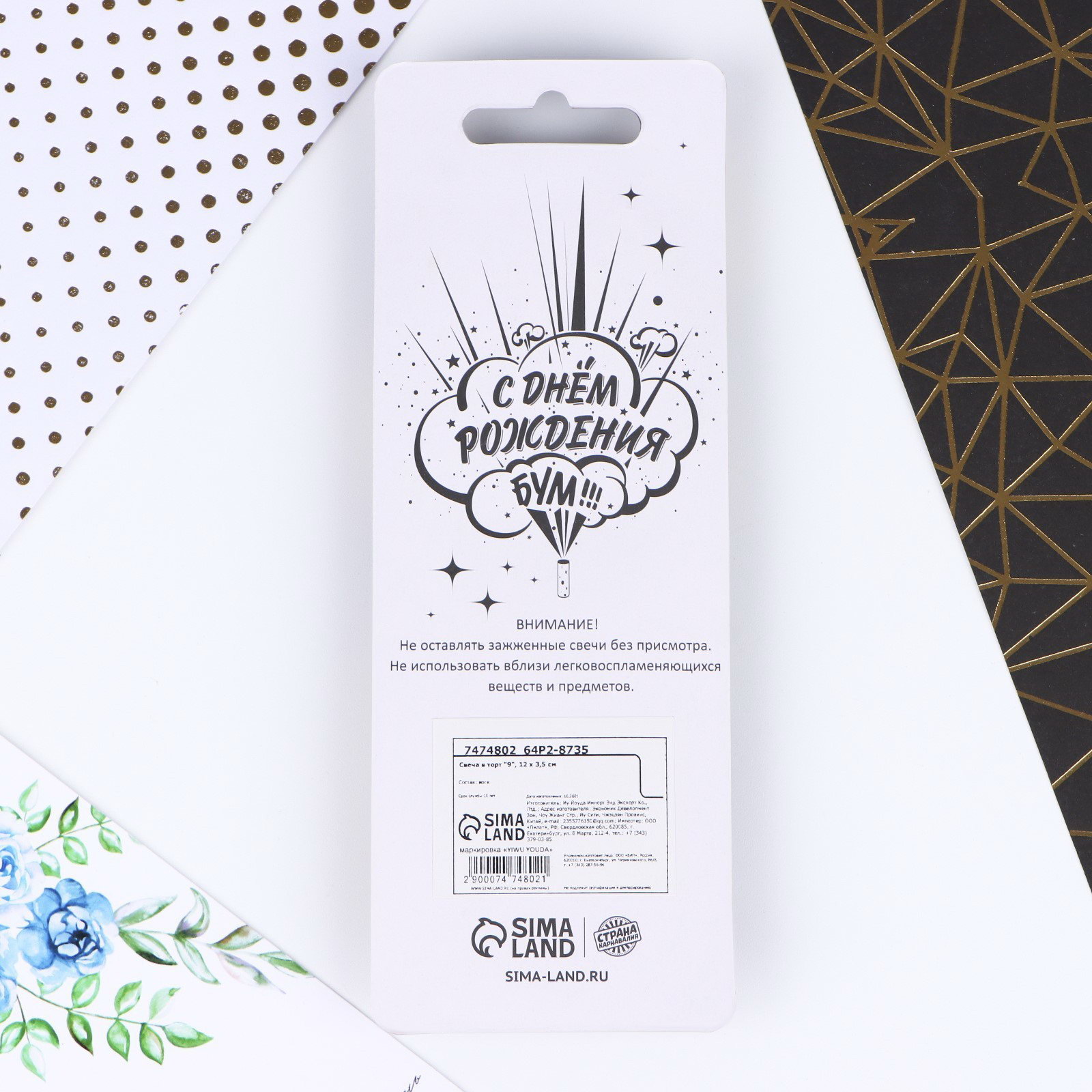 Свеча для торта, цифра "9", 11.5 x 2.3 см, 2.3x0.5x11.5 см., Страна Карнавалия, Китай