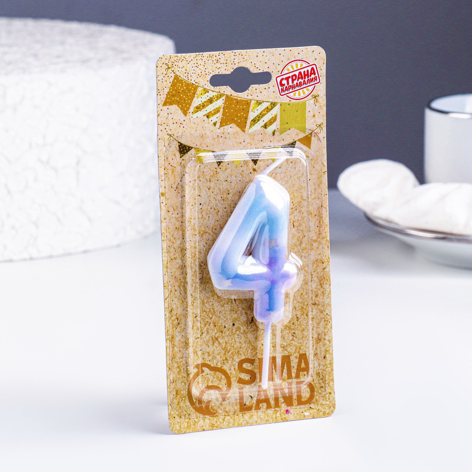 Свеча в торт на шпажке "Звездопад", цифра 4, 5.5 см, 5.5 см., Страна Карнавалия, Китай