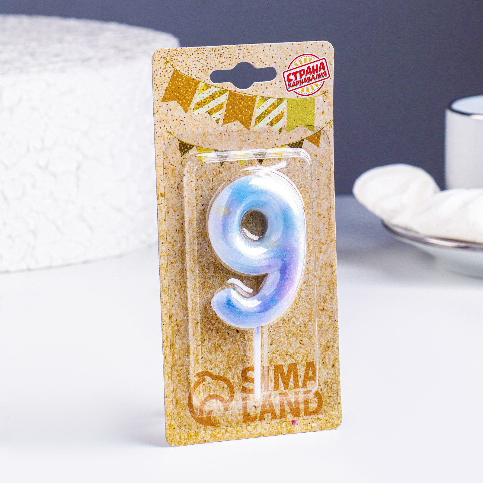 Свеча в торт на шпажке "Звездопад", цифра 9, 5.5 см, 5.5 см., Страна Карнавалия, Китай