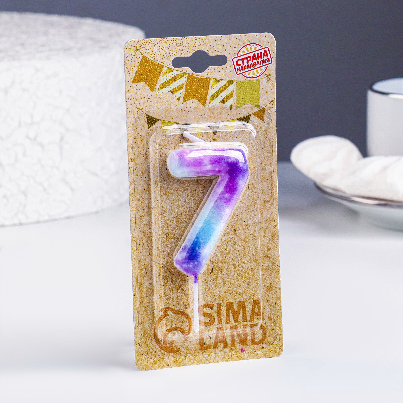 Свеча в торт на шпажке "Галактика", цифра 7, 5.5 см, 5.5 см., Страна Карнавалия, Китай