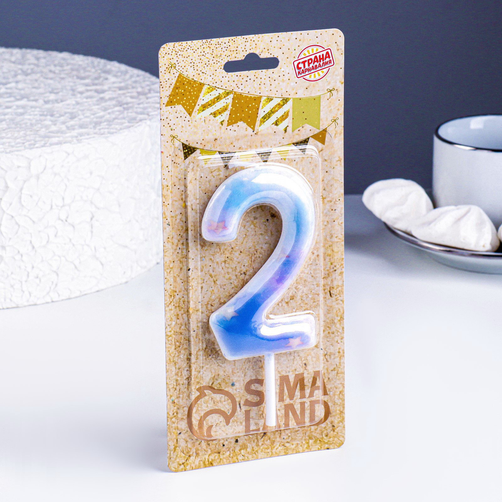 Свеча в торт на шпажке "Звездопад", цифра 2, 9 см, ГИГАНТ, 9 см., Страна Карнавалия, Китай
