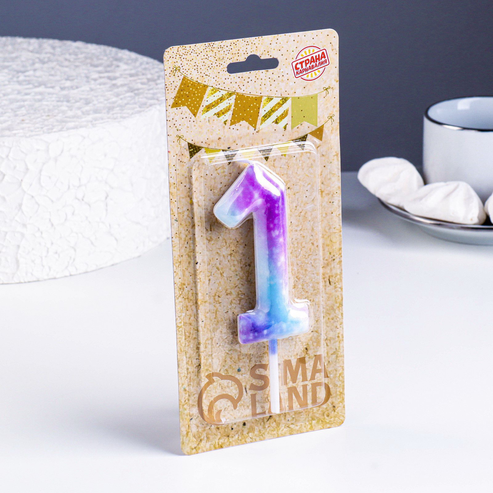 Свеча в торт на шпажке "Галактика", цифра 1, 9 см, ГИГАНТ, 9 см., Страна Карнавалия, Китай