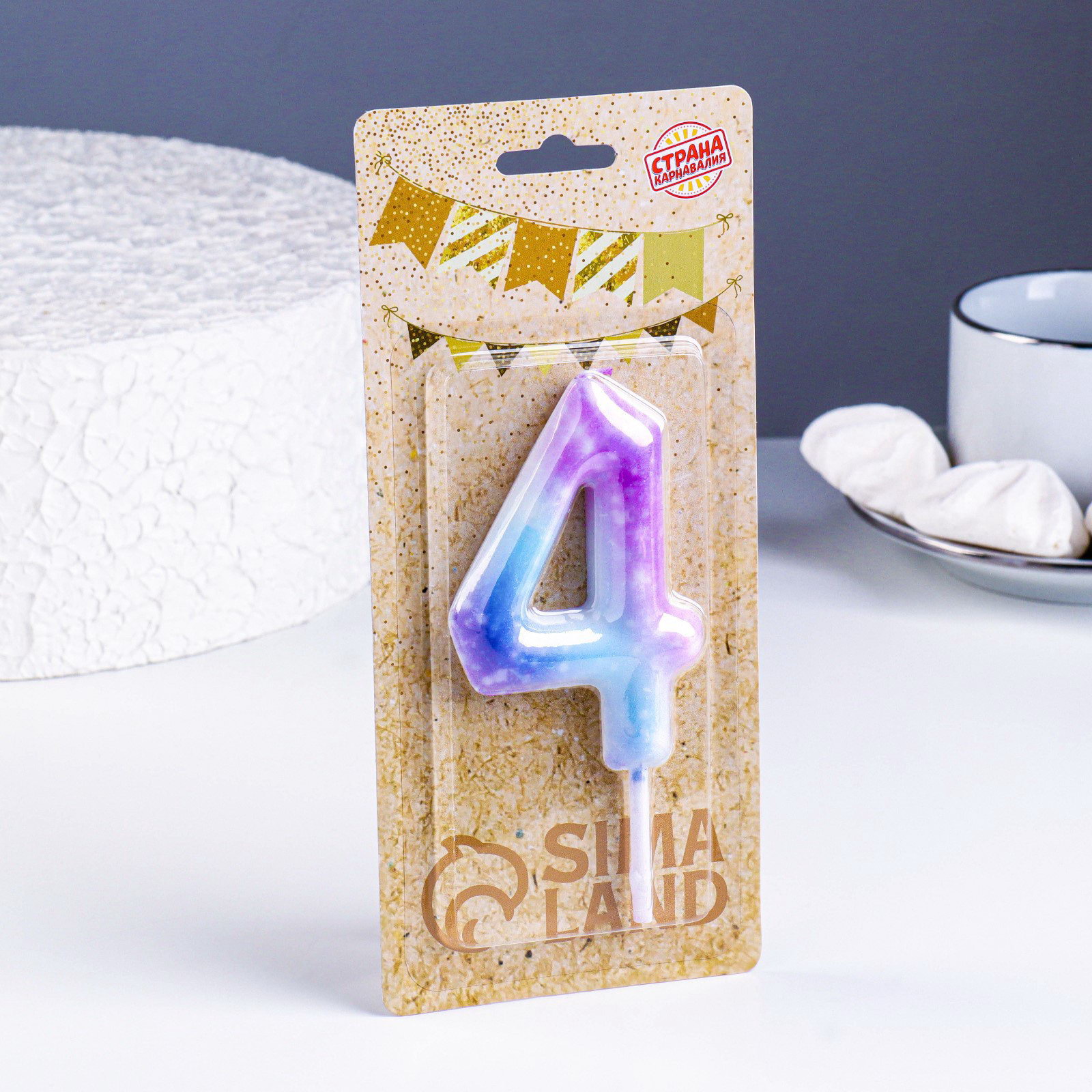 Свеча в торт на шпажке "Галактика", цифра 4, 9 см, ГИГАНТ, 9 см., Страна Карнавалия, Китай