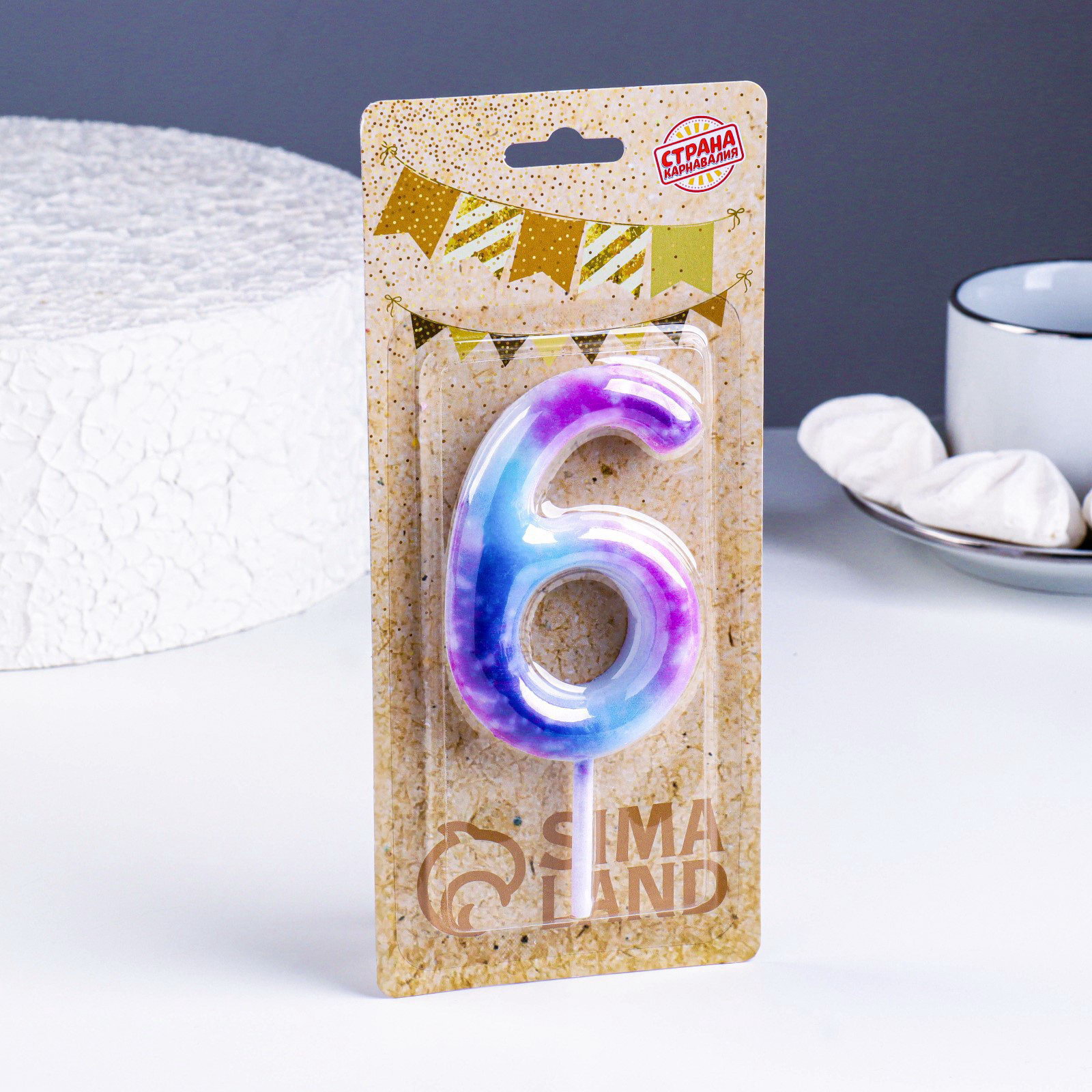 Свеча в торт на шпажке "Галактика", цифра 6, 9 см, ГИГАНТ, 9 см., Страна Карнавалия, Китай