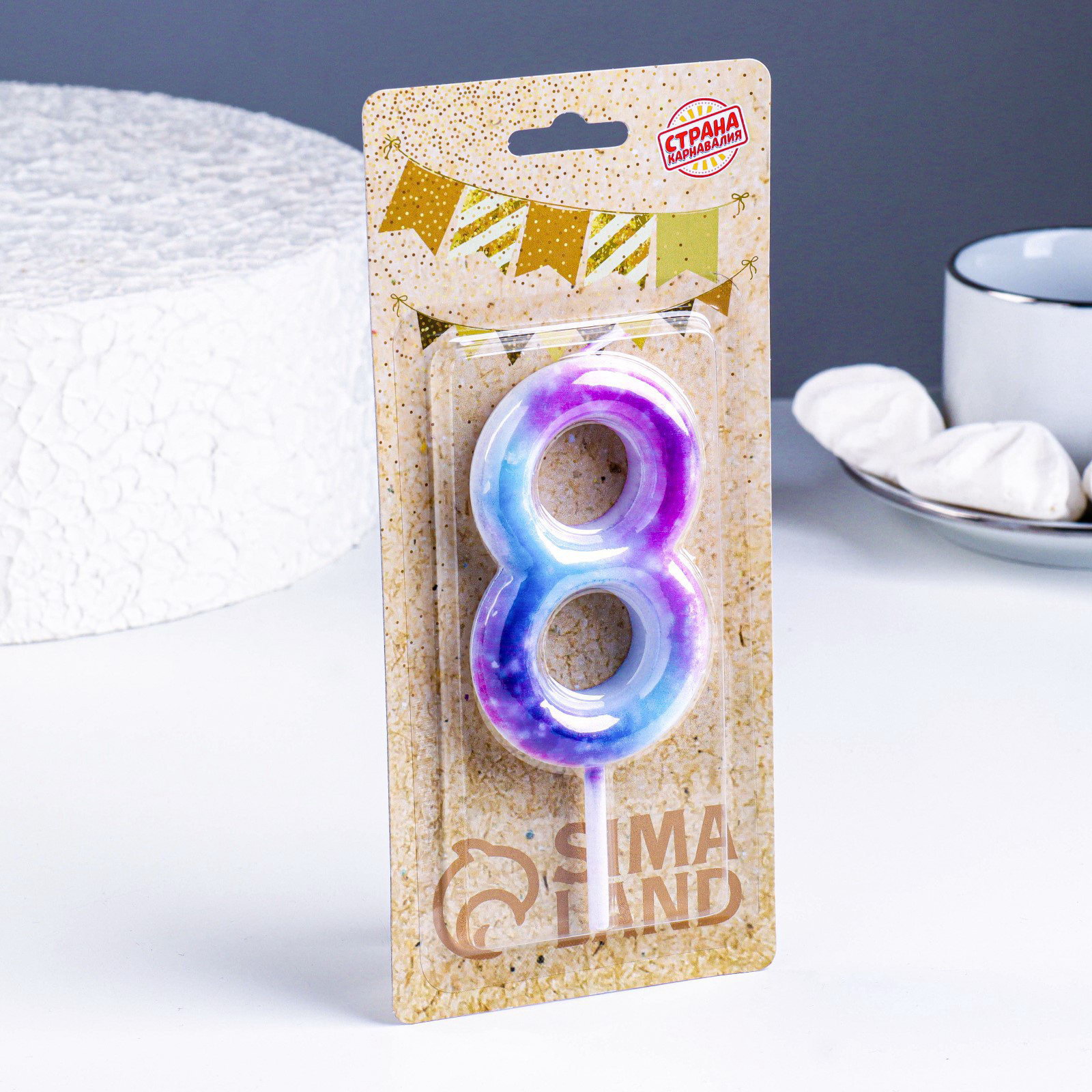 Свеча в торт на шпажке "Галактика", цифра 8, 9 см, ГИГАНТ, 9 см., Страна Карнавалия, Китай