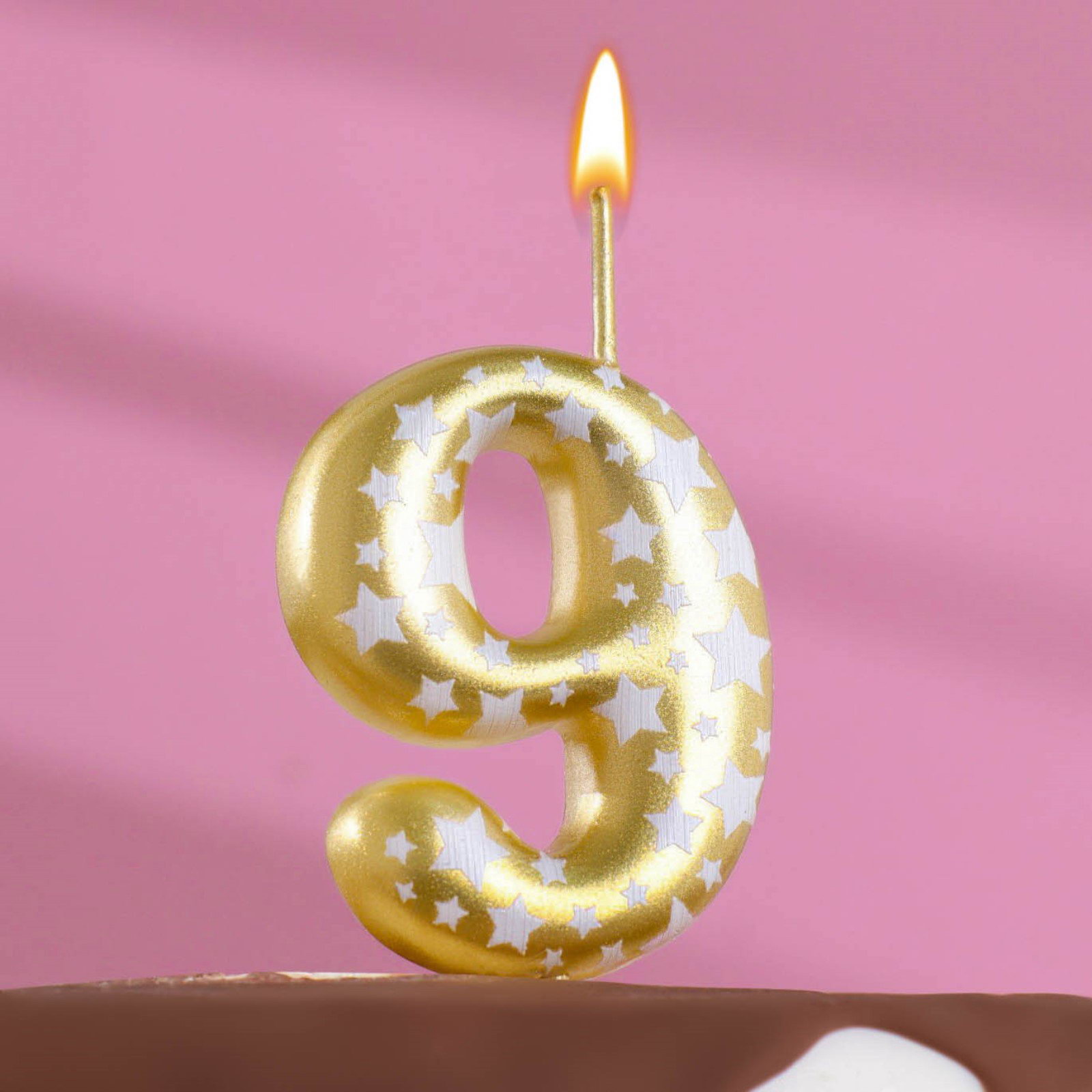 Свеча для торта "Золотая со звездами", цифра 9, 5.5 см, Омский свечной завод, Россия