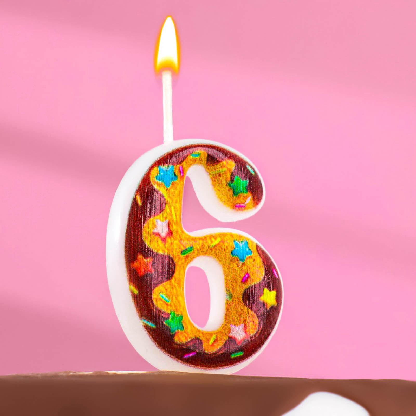 Свеча для торта "Печенье с шоколадной глазурью", цифра 6, 5.5 см, Омский свечной завод, Россия