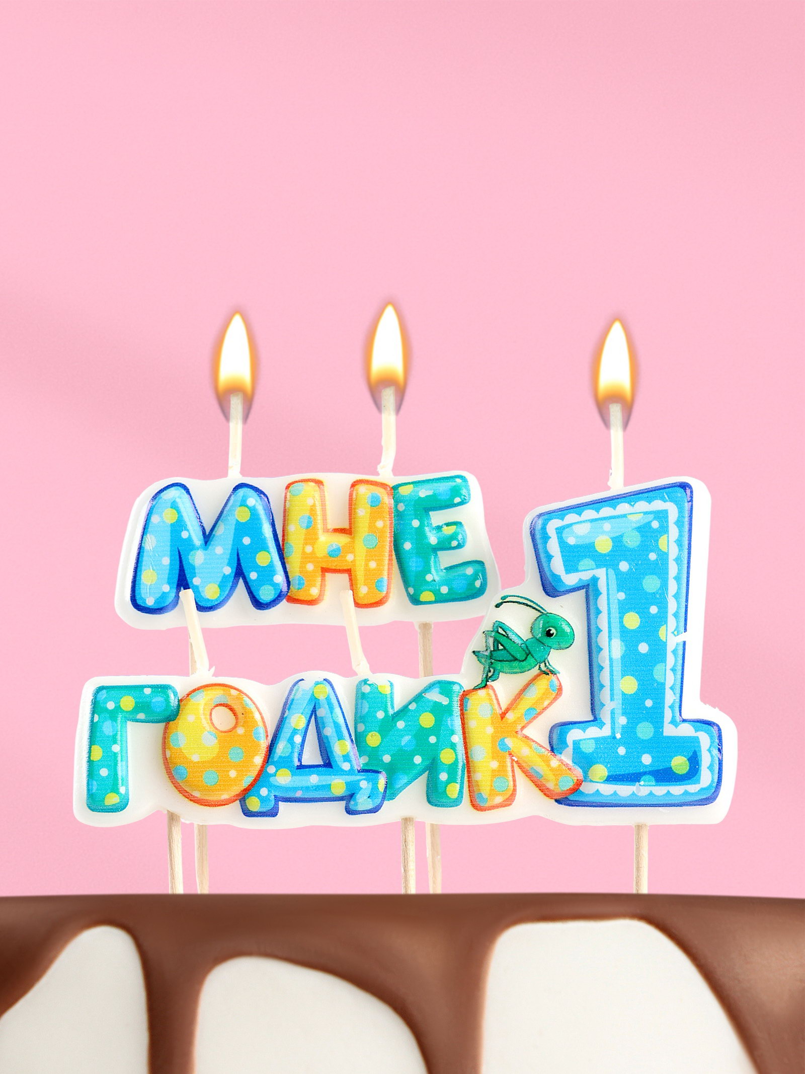 Свеча в торт на шпажке для мальчиков "Мне годик", 7.7 см, 12 мин, 65 г, Омский свечной завод, Россия
