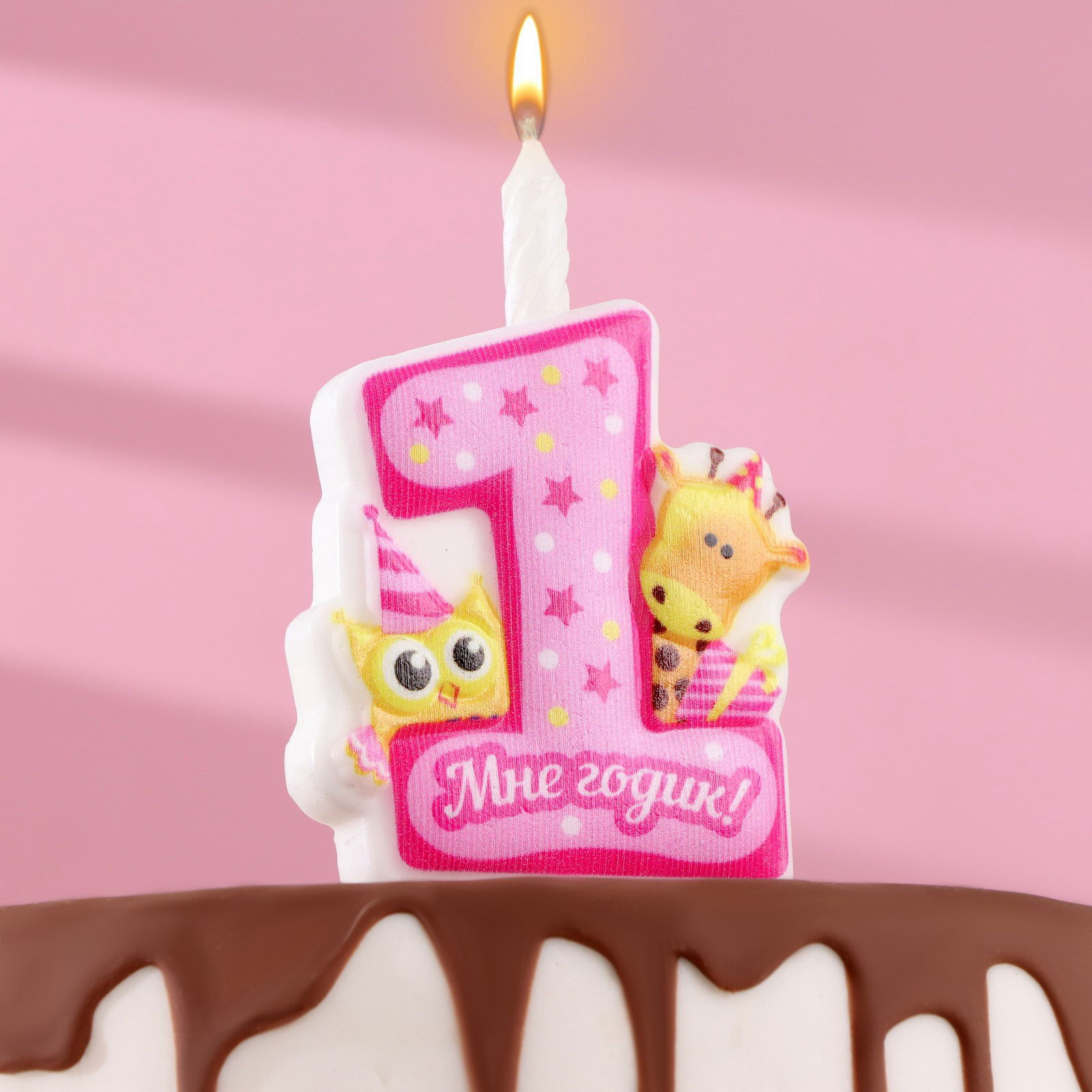 Свеча в торт "Мне годик!" с жирафом и совой, 9.7 см, 12 мин, 40 г, Омский свечной завод, Россия