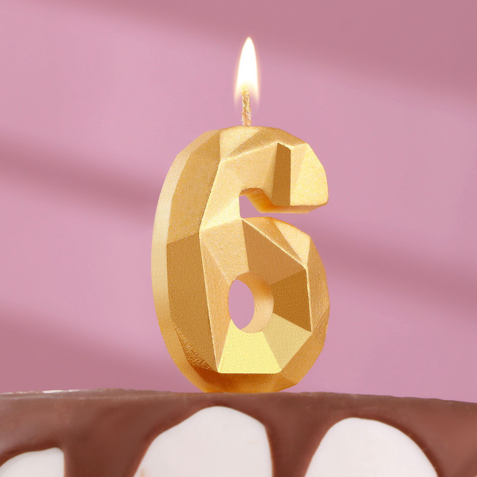 Свеча в торт "Алмаз" цифра 6 золотая, 6.5 см, Страна Карнавалия, Россия