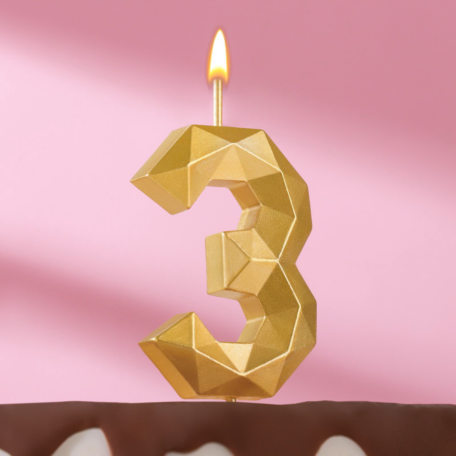 Свеча в торт на шпажке "Многогранник", цифра 3, 7 см, золото, Омский свечной завод, Россия