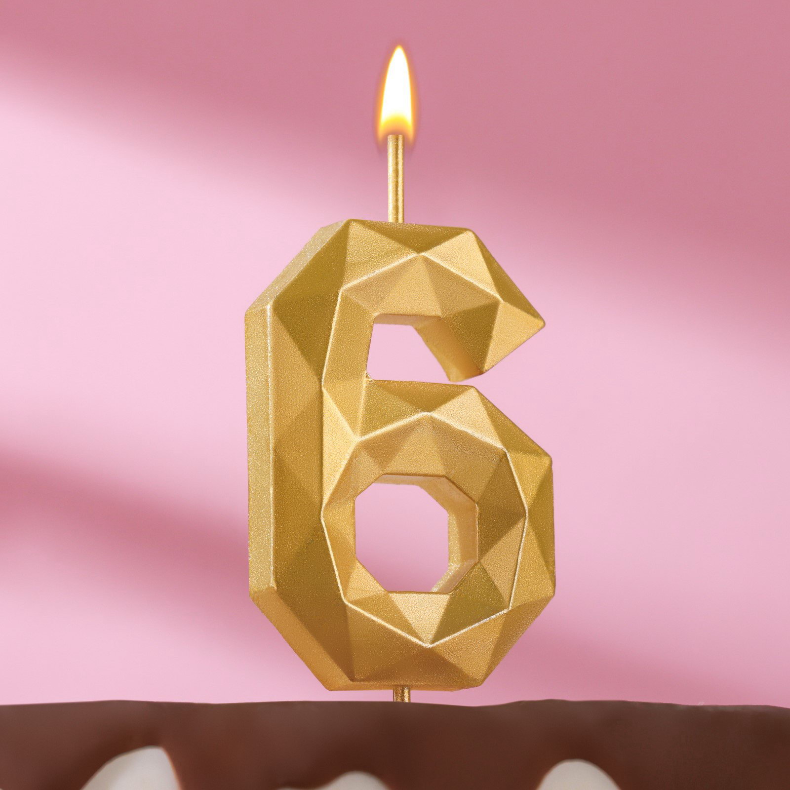 Свеча в торт на шпажке "Многогранник", цифра 6, 7 см, золото, Омский свечной завод, Россия