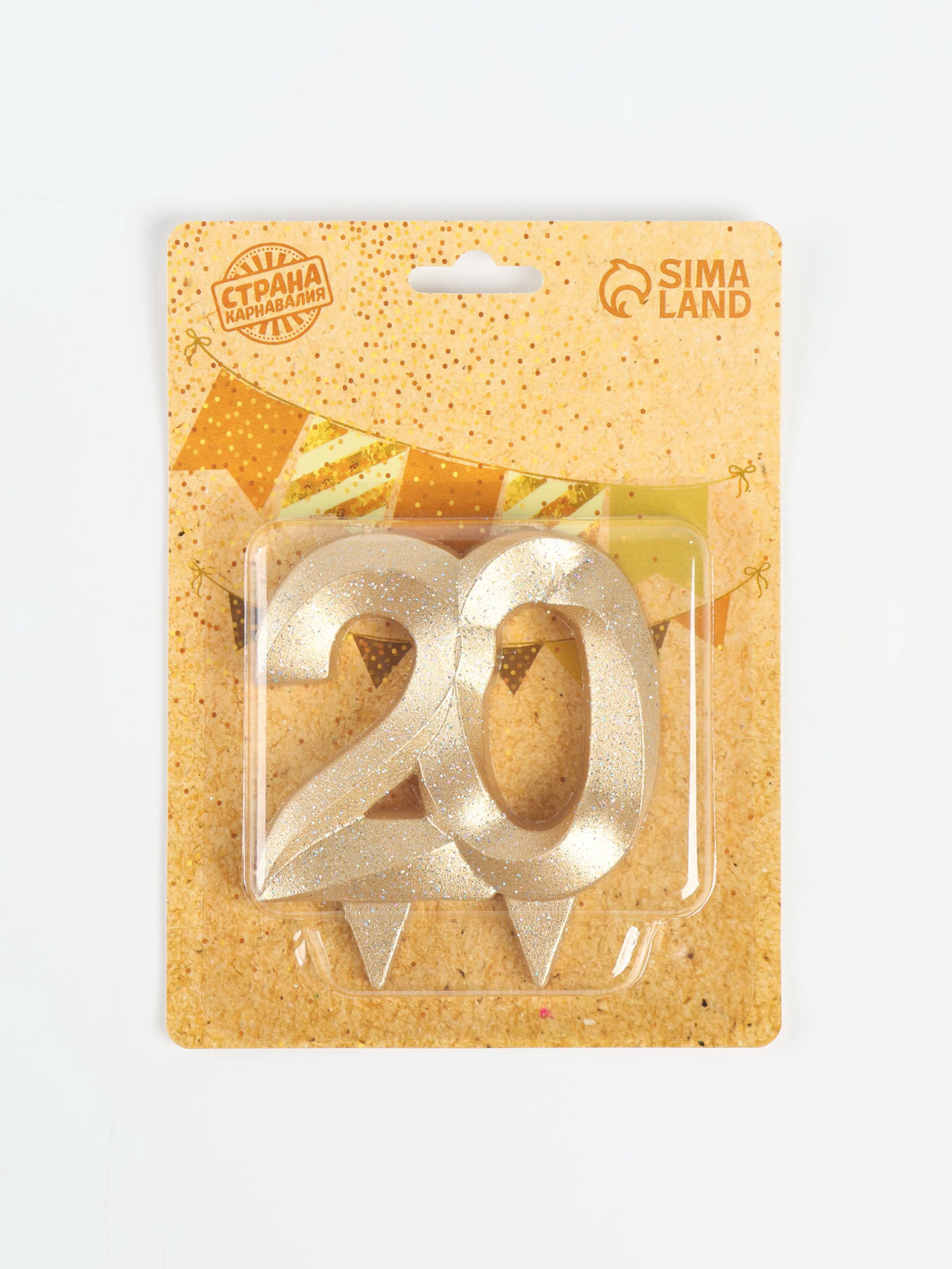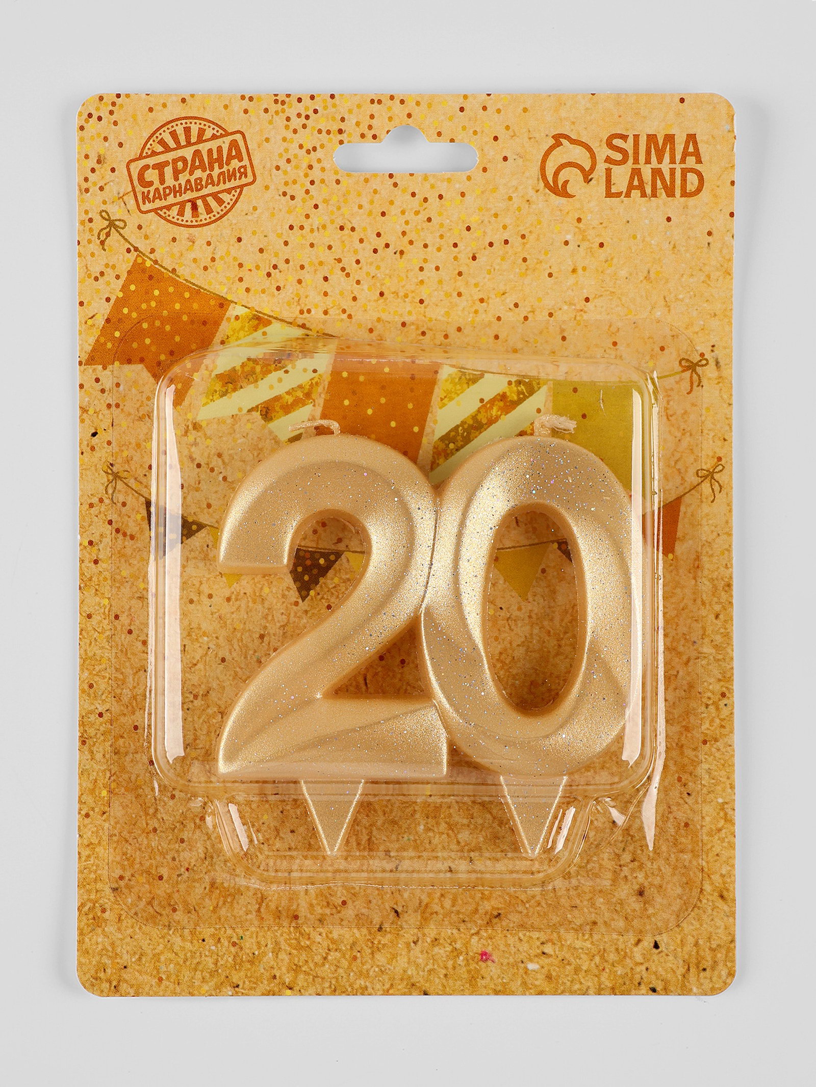 Свеча для торта юбилейная "Грань", цифра 20, золотой блеск, 8 см, Страна Карнавалия, Россия