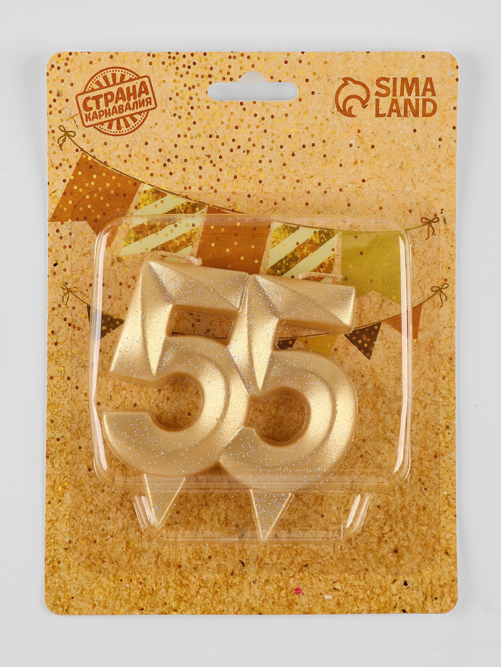 Свеча для торта юбилейная "Грань", цифра 55, золотой блеск, 8 см, Страна Карнавалия, Россия