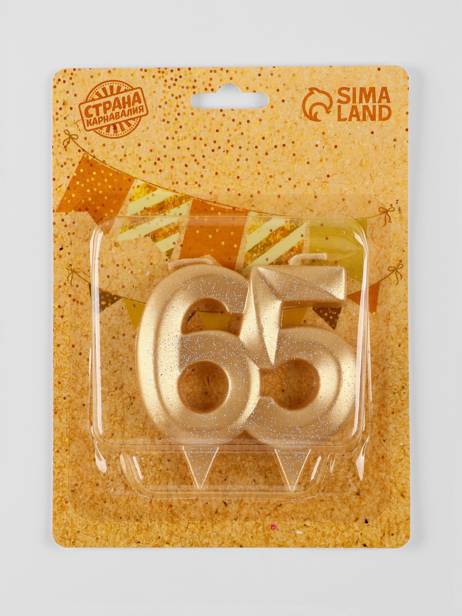 Свеча для торта юбилейная "Грань", цифра 65, золотой блеск, 8 см, Страна Карнавалия, Россия