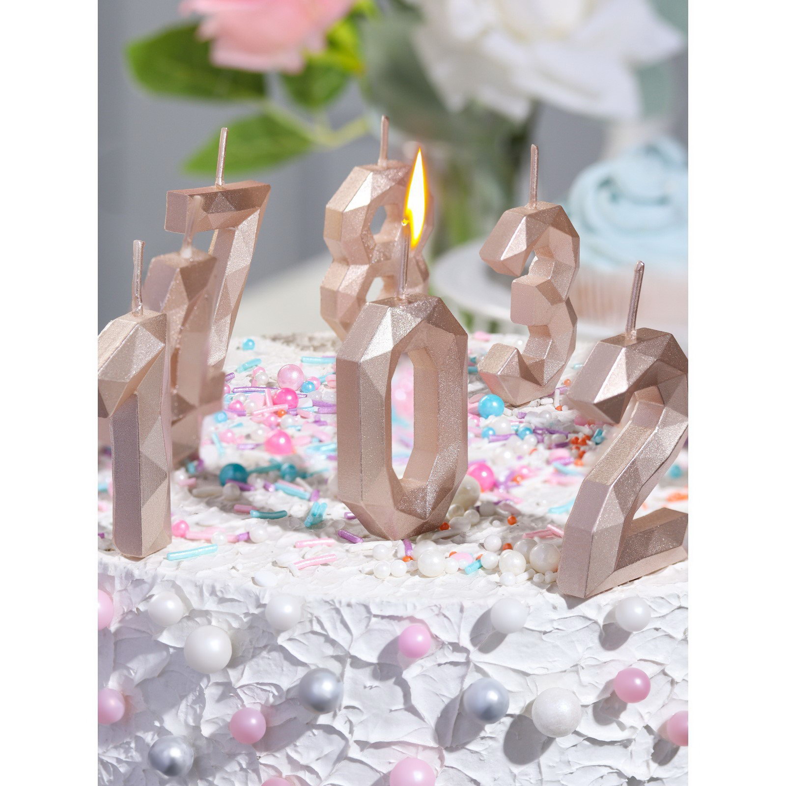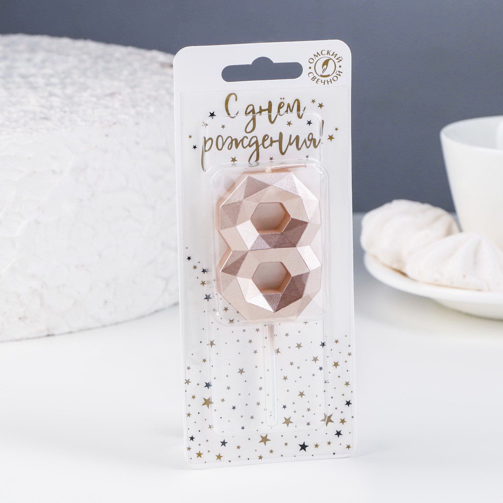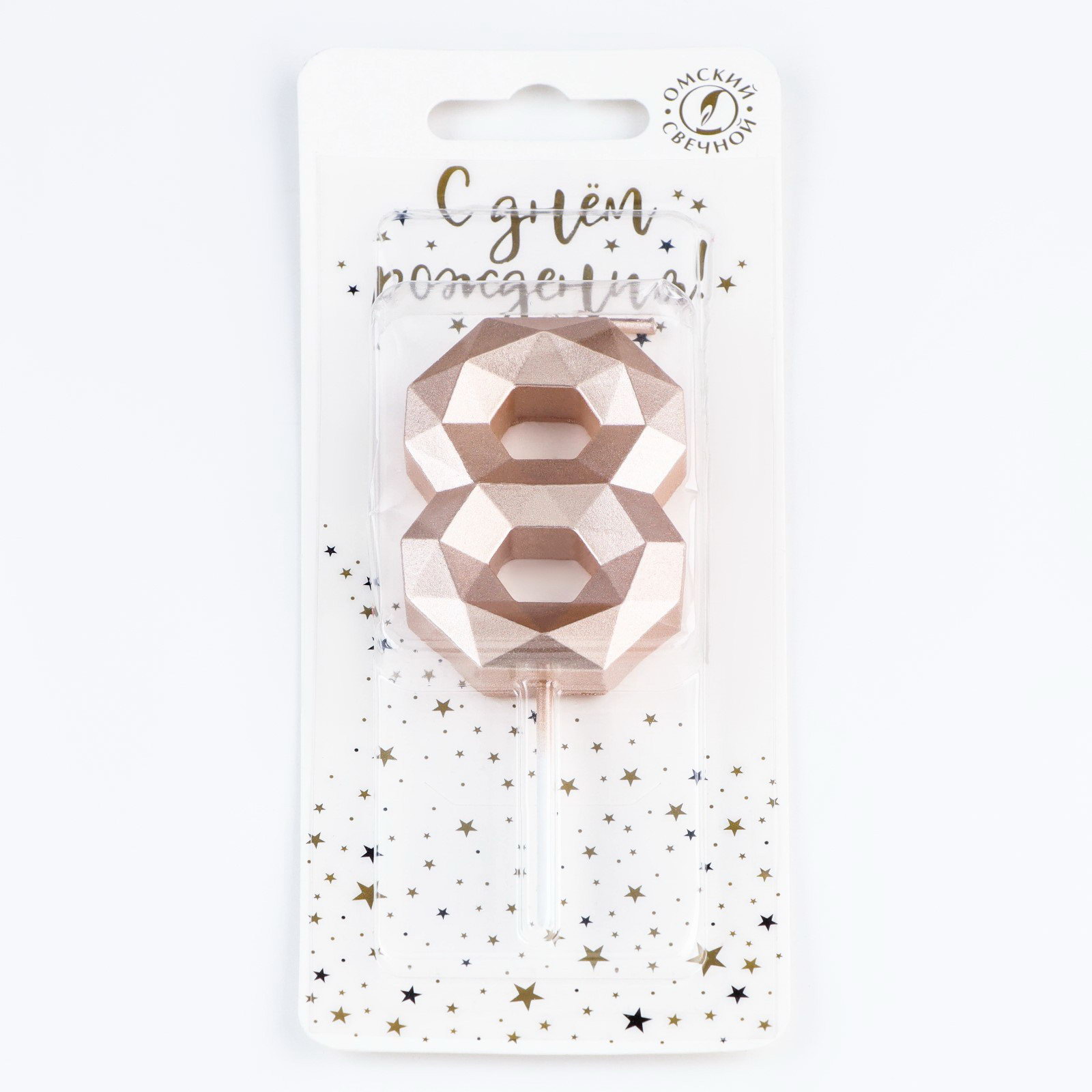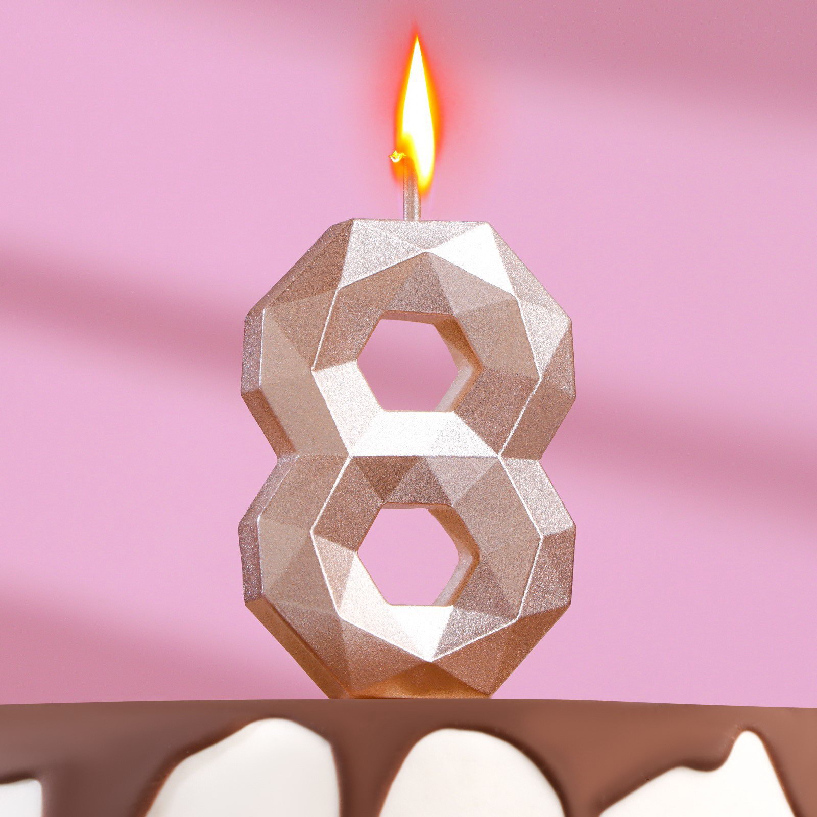 Свеча в торт на шпажке "Многогранник", цифра 8, 7 см, шампань, Омский свечной завод, Россия