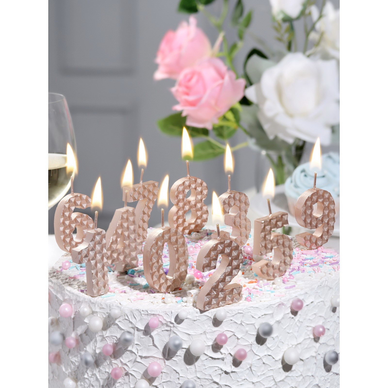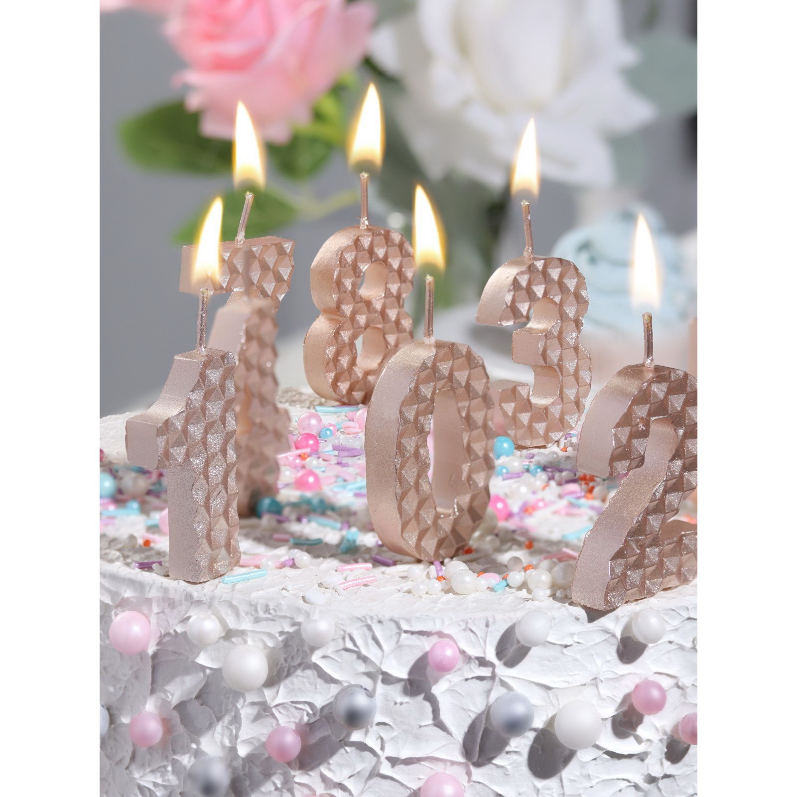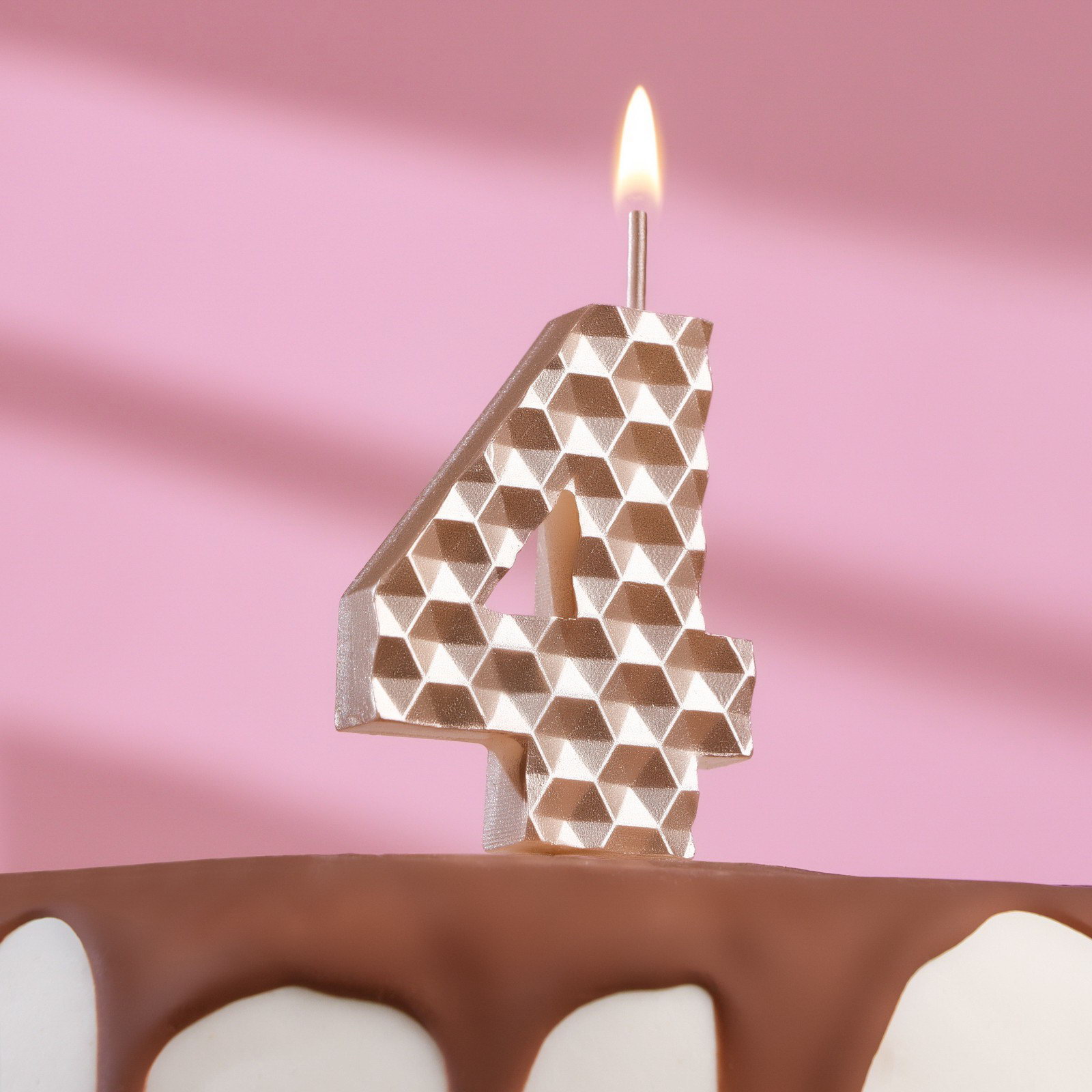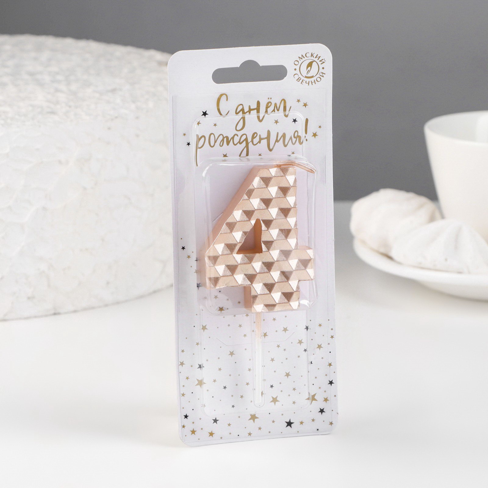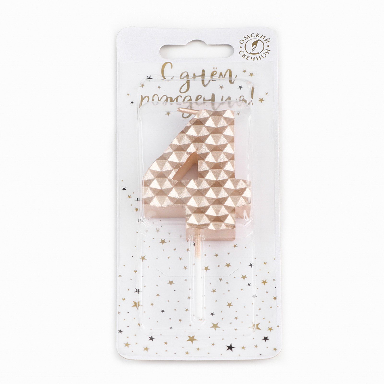 Свеча в торт на шпажке "Соты", цифра 4, 7 см, шампань, Омский свечной завод, Россия