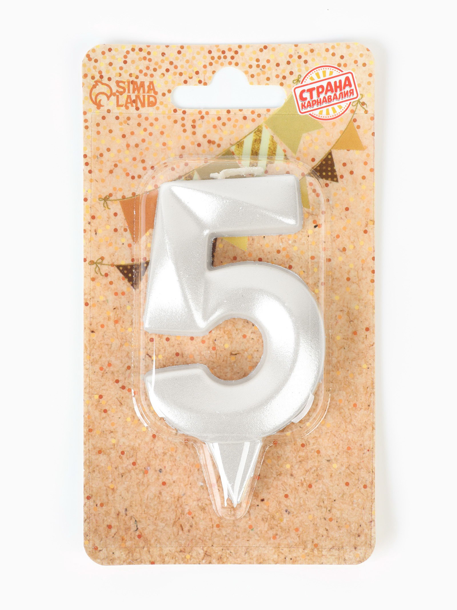 Свеча в торт "Грань", цифра 5, жемчужный, 6.5 см, Страна Карнавалия, Россия