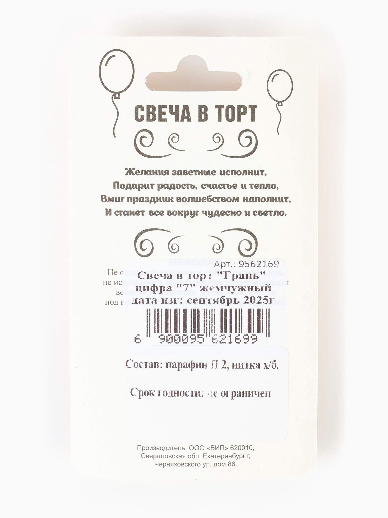 Размер упаковки: 7.5 x 1 x 14.5 см. Состав: Парафин Для кого: Унисекс Форма свечи: Цифры В наборе, шт.: 1 tnved: 3406000000 Температурное ограничение: Нет Цвет: Белый Цифра: 7 Высота свечи, см: 7.8 Высота свечи без шпажки, см: 6.5 Уважаемые клиенты! В связи с наступлением осенне-зимнего периода напоминаем Вам, что на свечах с лаковым покрытием от резких перепадов температур или при низкой температуре (ниже – 20С) может отслоиться (вздуться) лак. Явление носит, как правило, обратимый характер. При транспортировке в зимнее (холодное) время года коробки со свечами вскрывать после того, как они постоят на Вашем теплом складе не менее суток. | ||