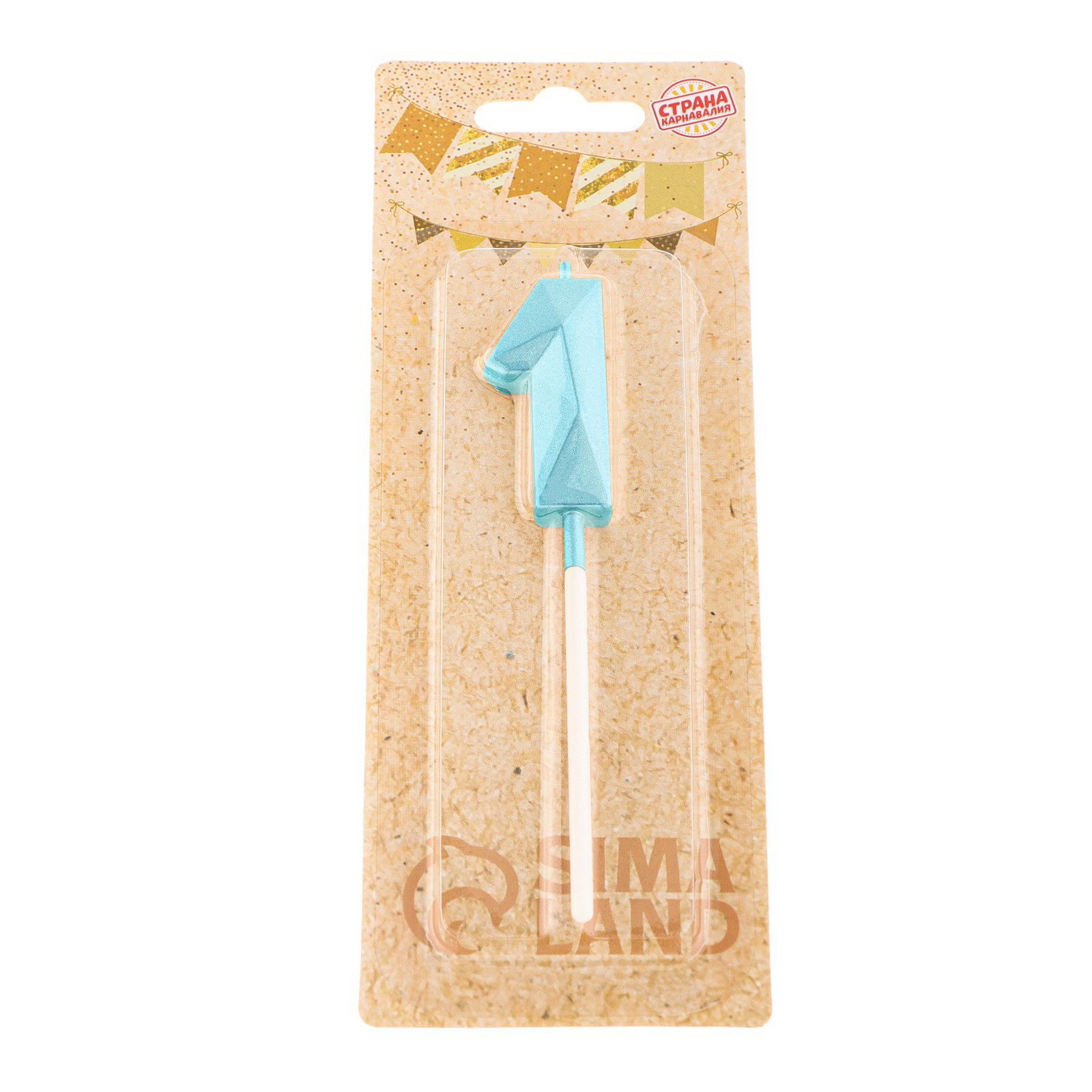 Свеча в торт на шпажке "Алмаз", цифра 1, голубая, 5 см, Страна Карнавалия, Китай