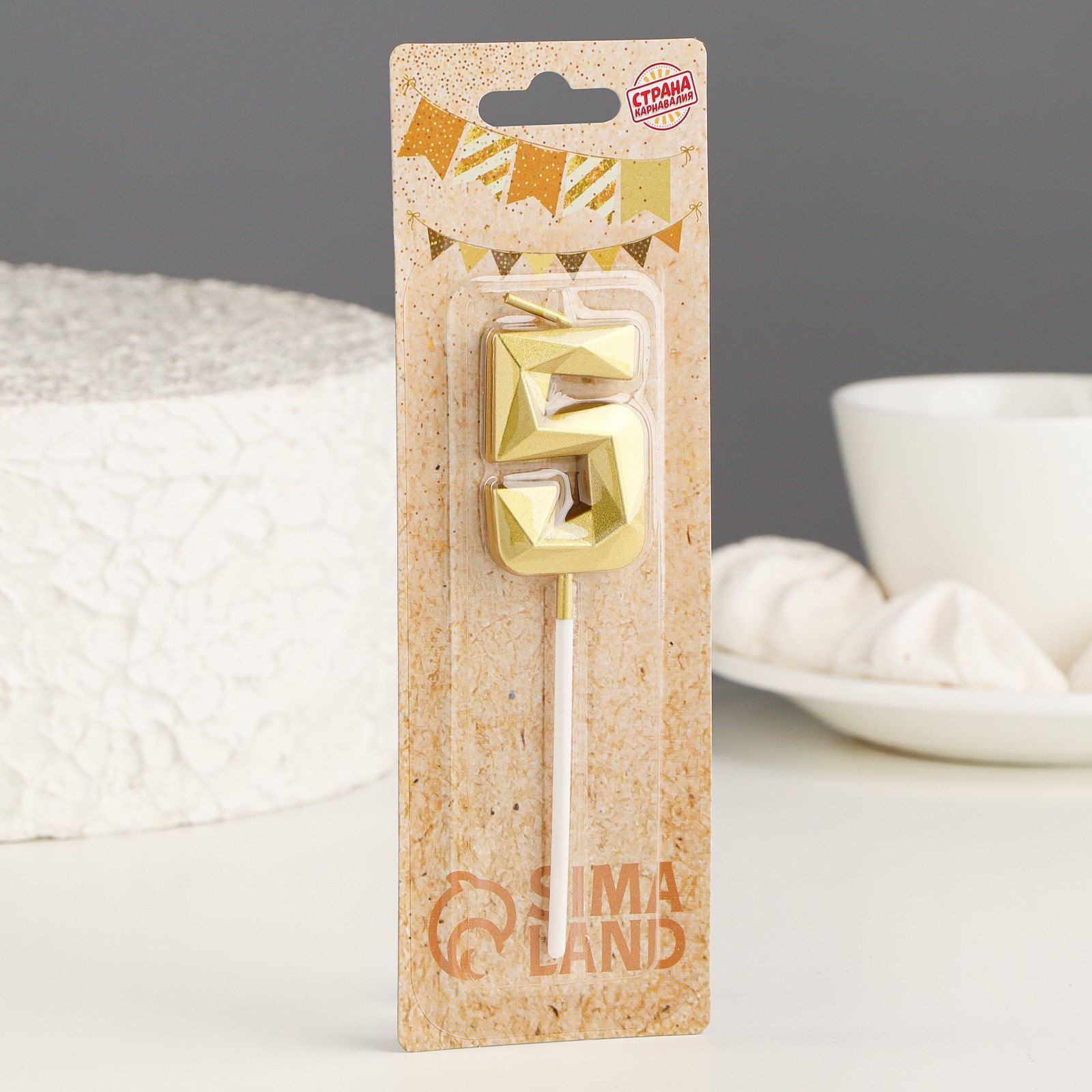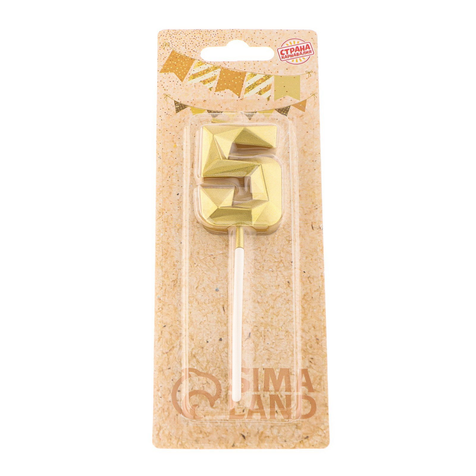 Свеча в торт на шпажке "Алмаз", цифра 5, золотая, 5 см, 6x1x18 см., Страна Карнавалия, Китай