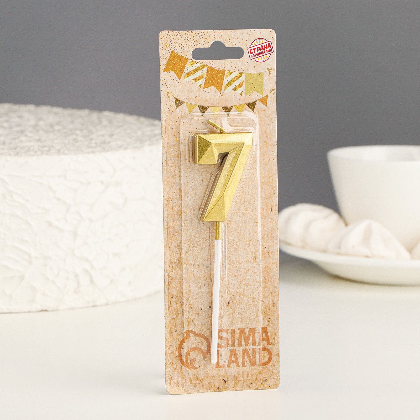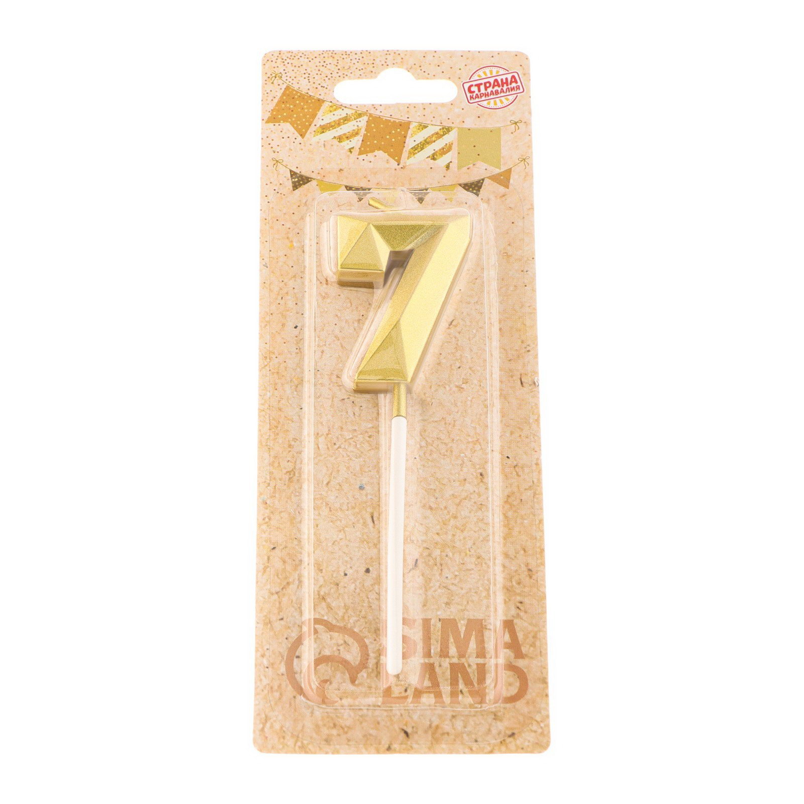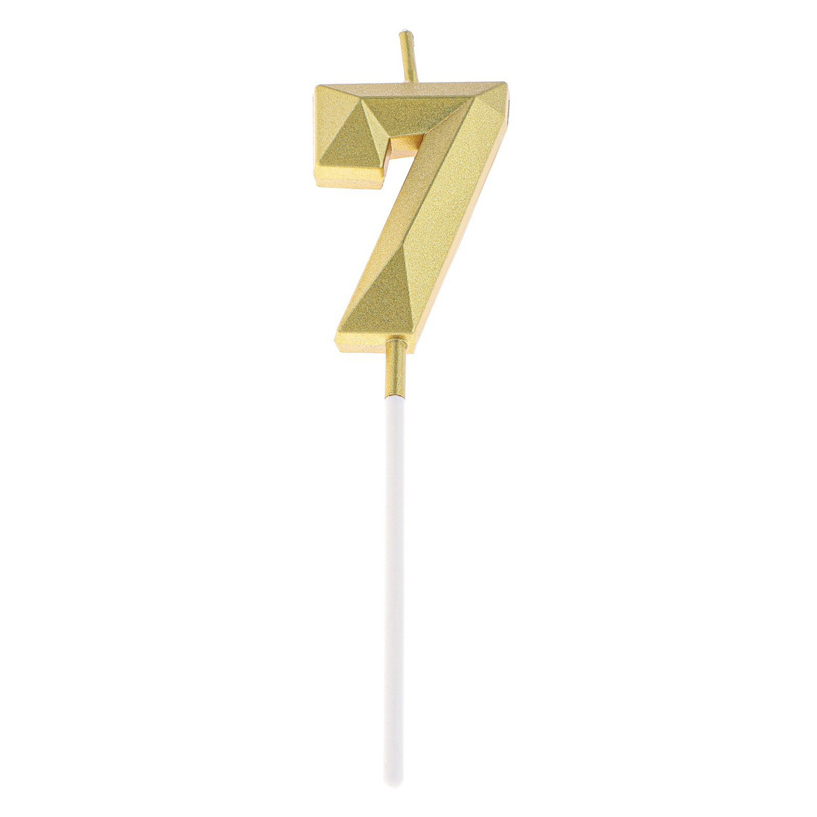 Свеча в торт на шпажке "Алмаз", цифра 7, золотая, 5 см, 6x1x18 см., Страна Карнавалия, Китай