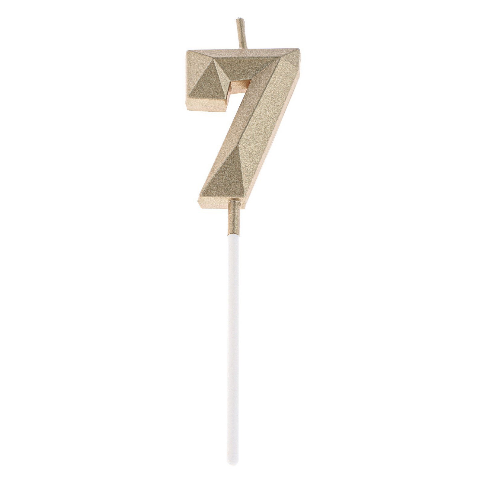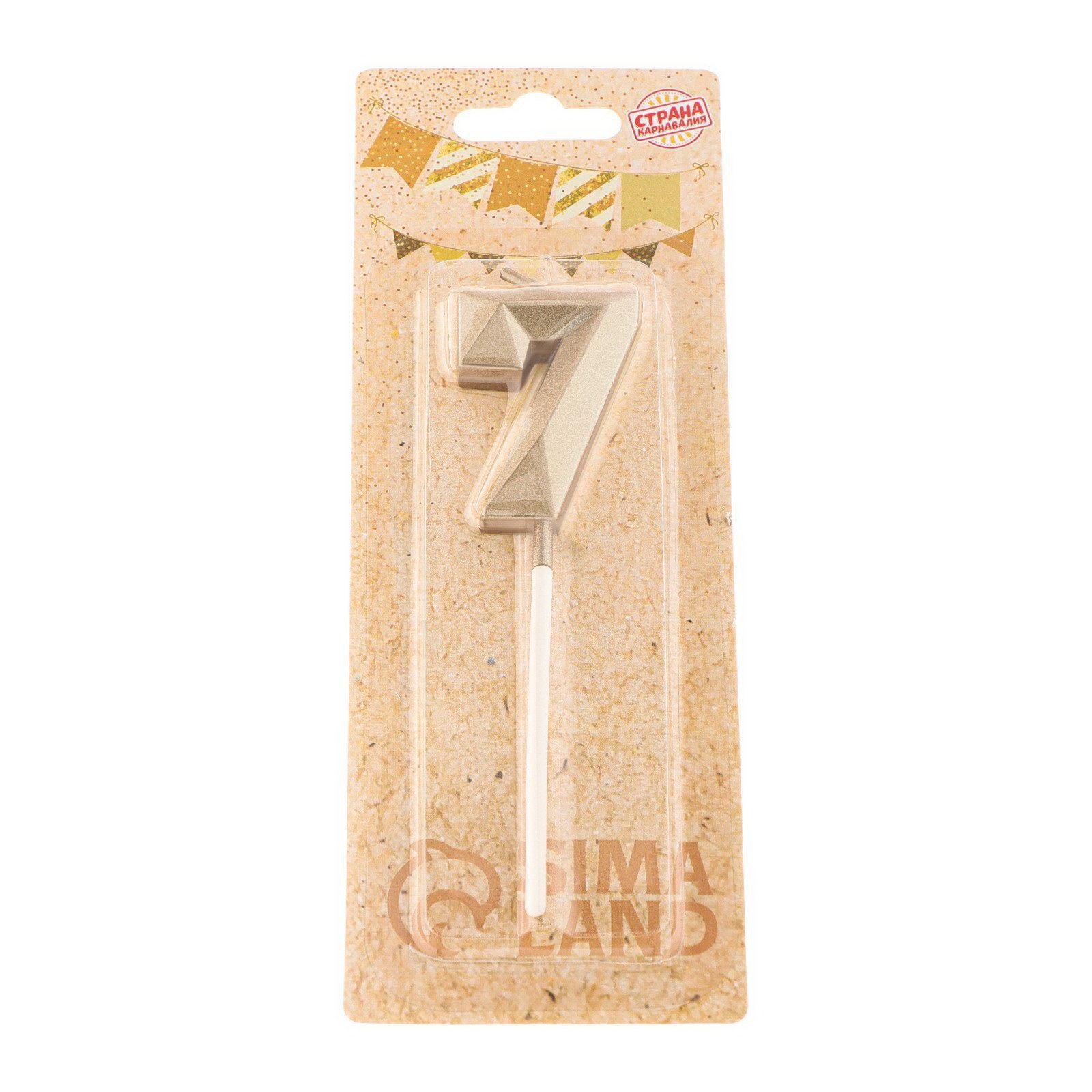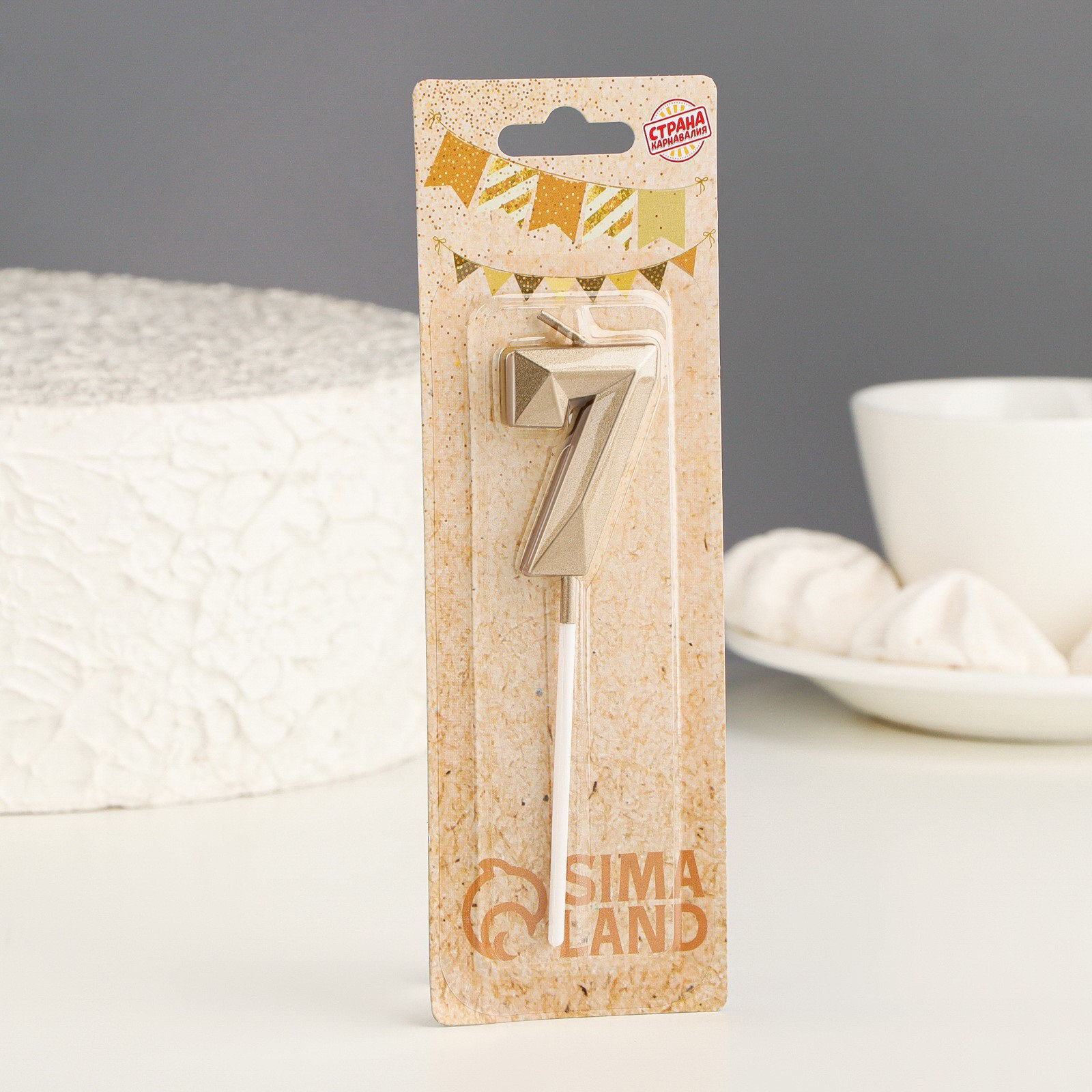 Свеча в торт на шпажке "Алмаз", цифра 7, шампань, 5x2.6 см, Страна Карнавалия, Китай