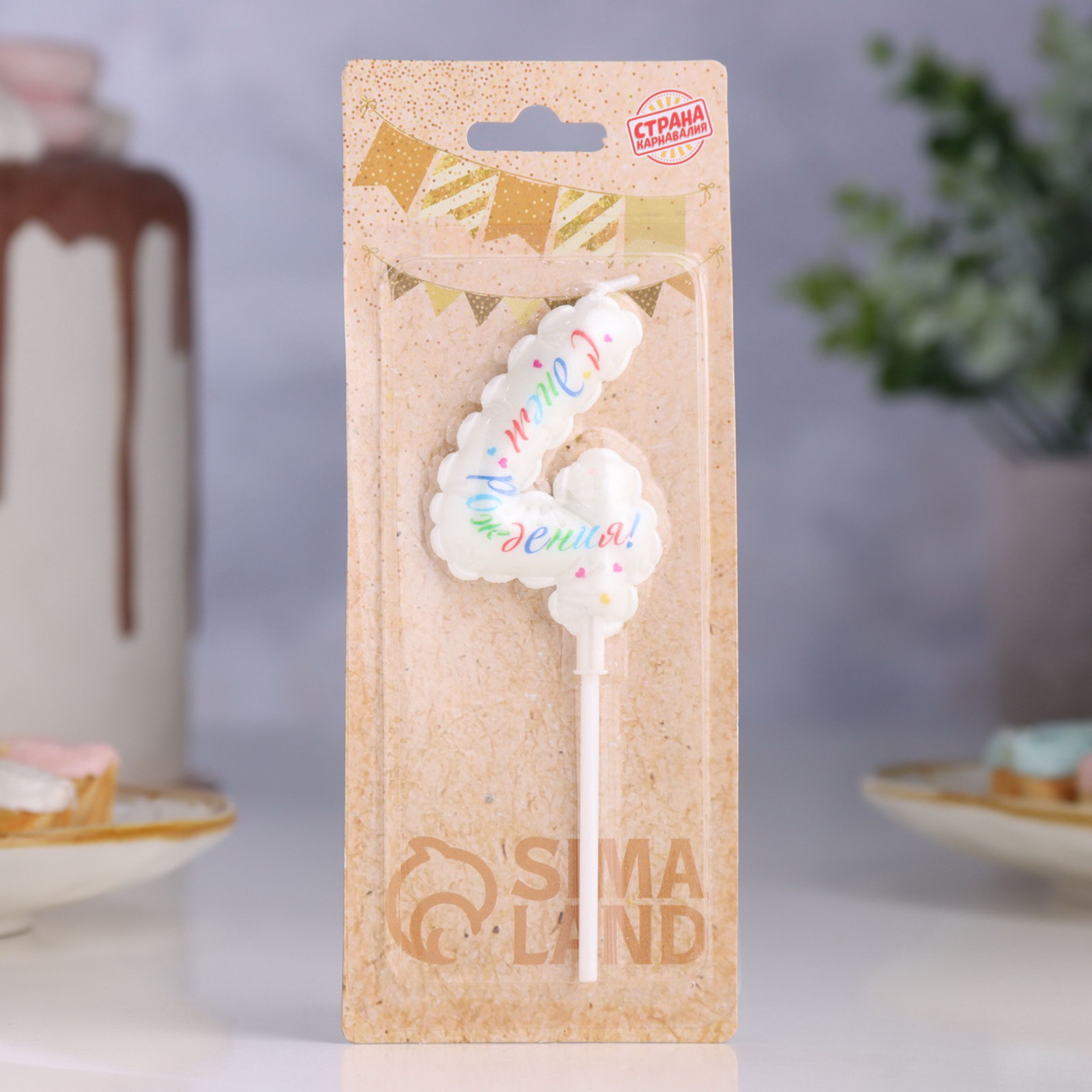 Свеча в торт "Воздушная", цифра 4, 5.5 см, белая, 7.5x18 см., Страна Карнавалия, Китай