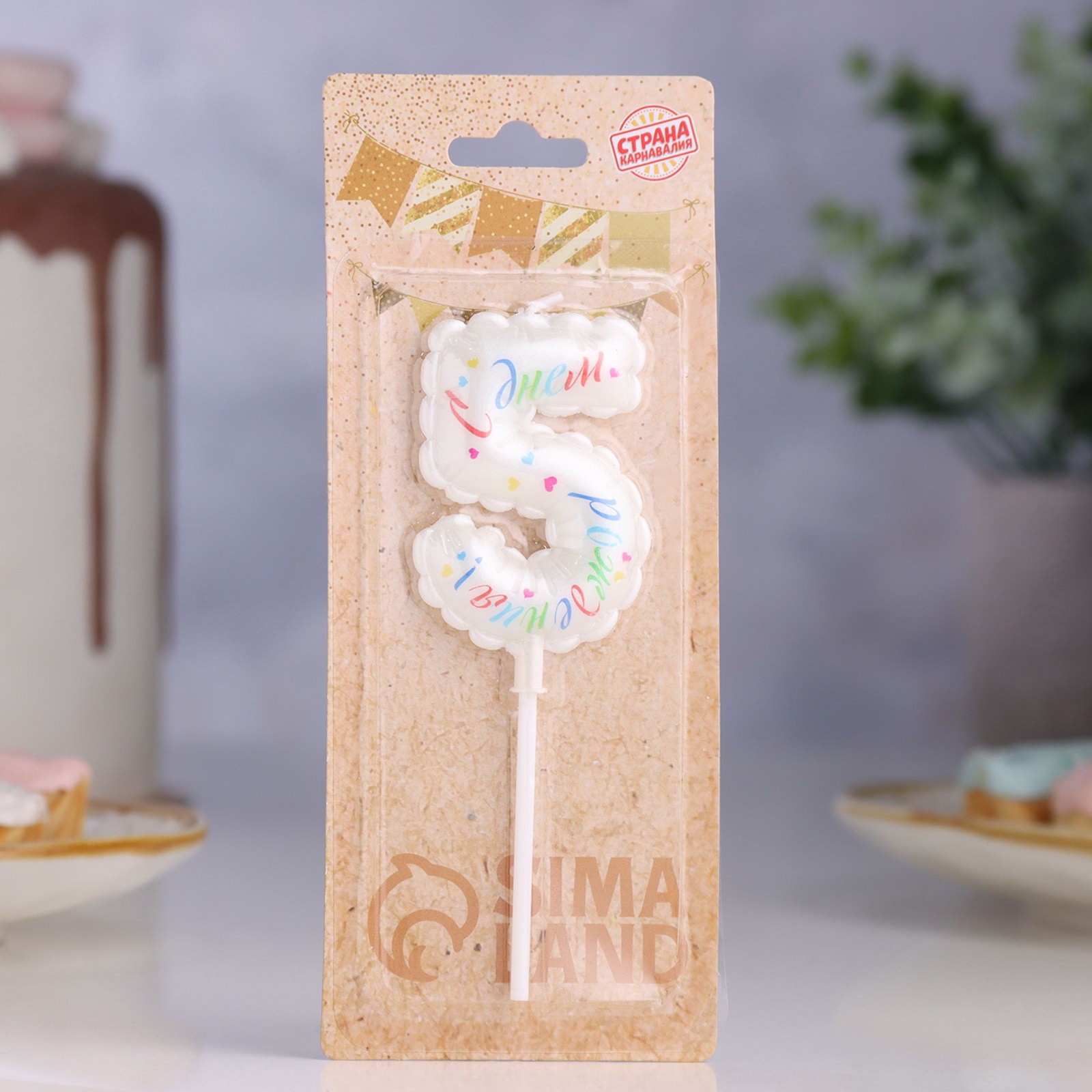 Свеча в торт "Воздушная", цифра 5, 5.5 см, белая, 7.5x18 см., Страна Карнавалия, Китай
