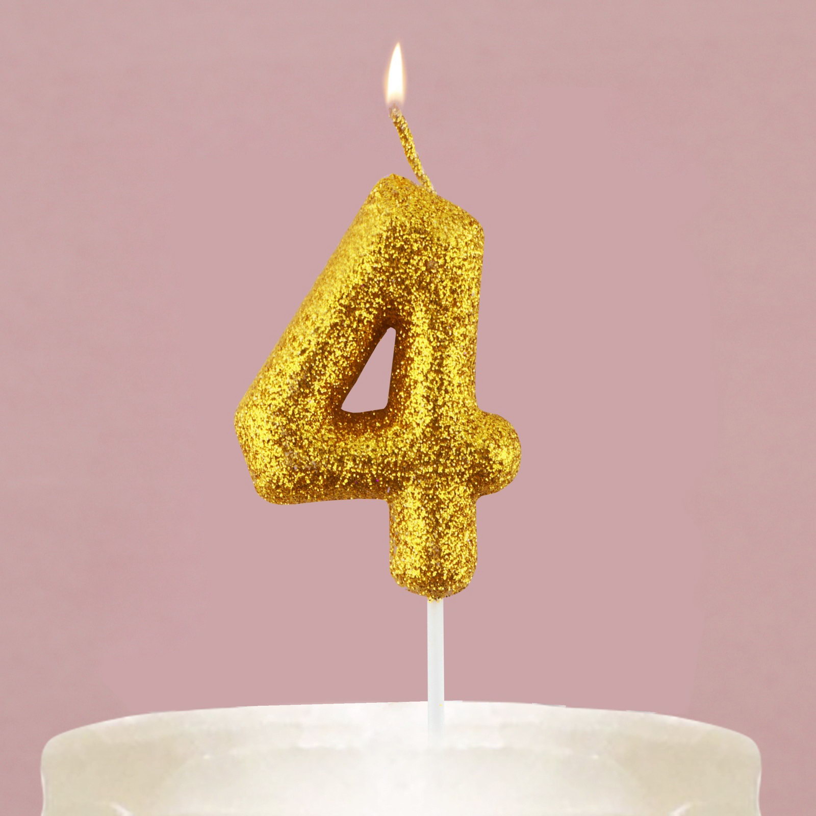 Свеча для торта, цифра, блестящая "4", золото, 9.5 x 4 см, 4x1x10 см., Страна Карнавалия, Китай