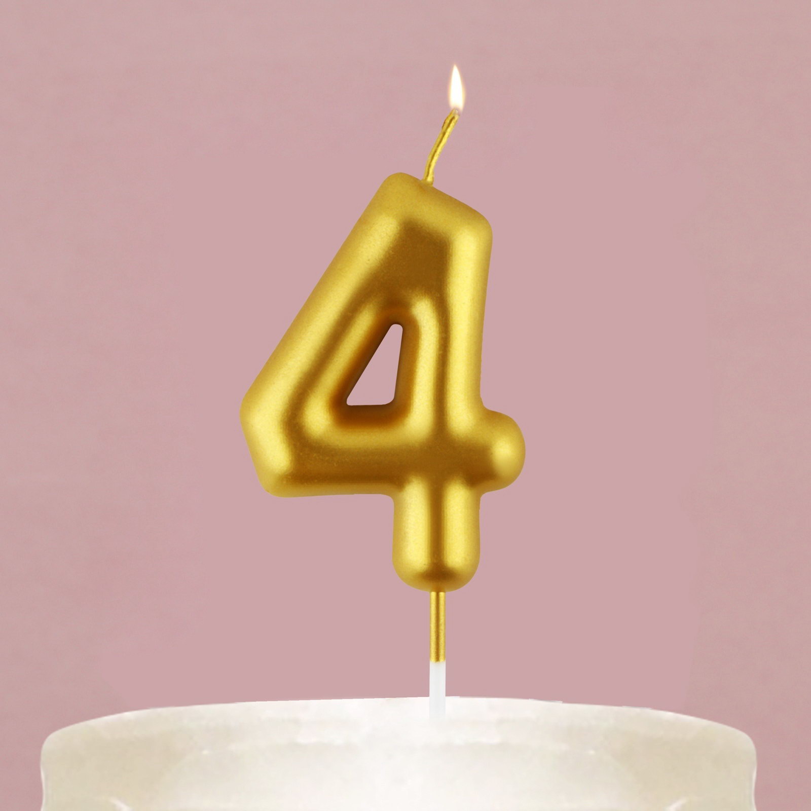 Свеча для торта, цифра "4", золото, 9.5 x 4 см, 4x10x0.5 см., Страна Карнавалия, Китай