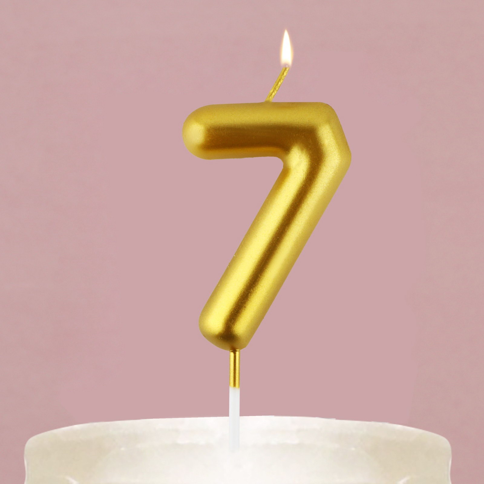 Свеча для торта, цифра "7", золото, 9.5 x 4 см, 4x10x0.5 см., Страна Карнавалия, Китай
